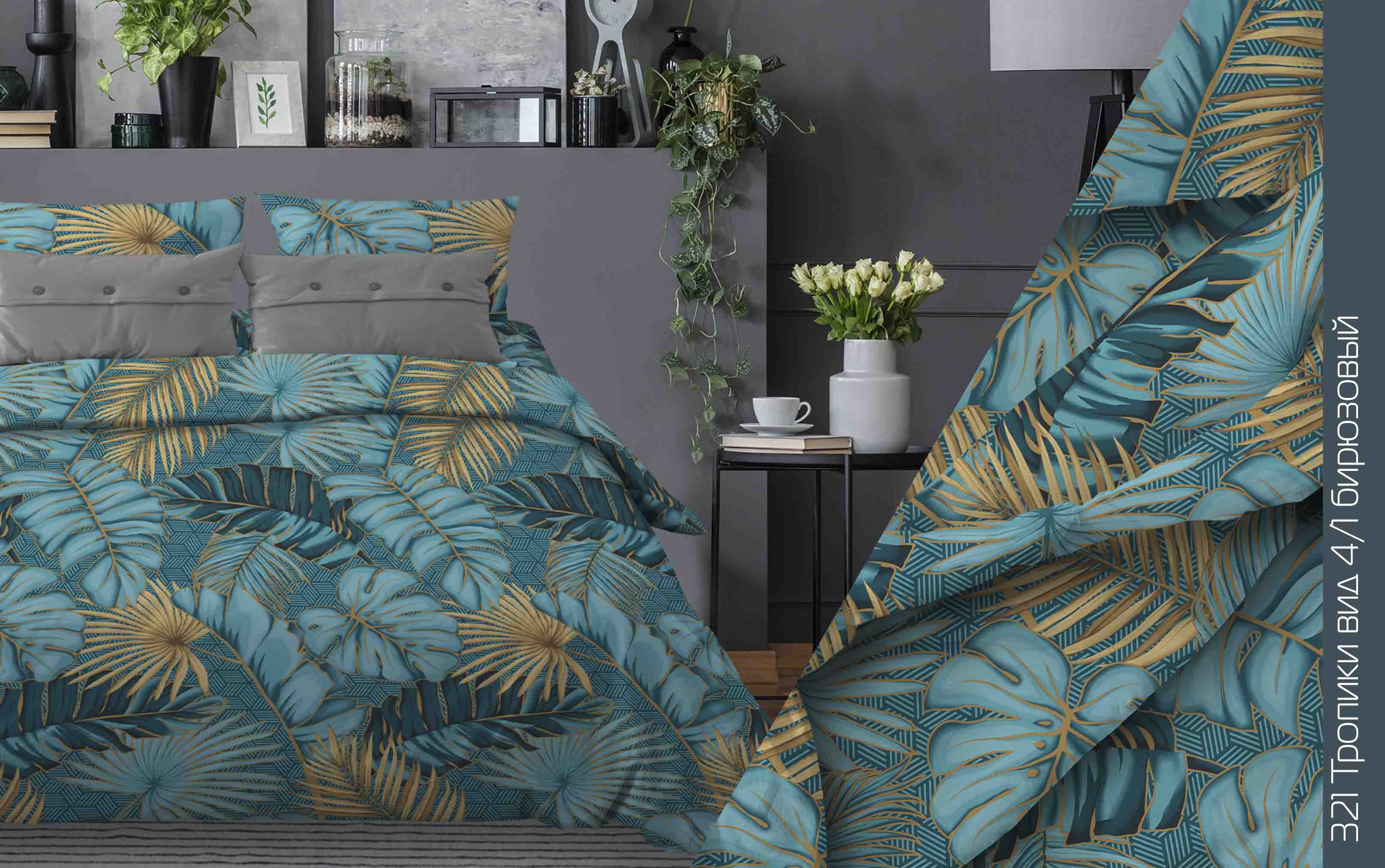 —Тропики(бирюзовый) КПБ бязь