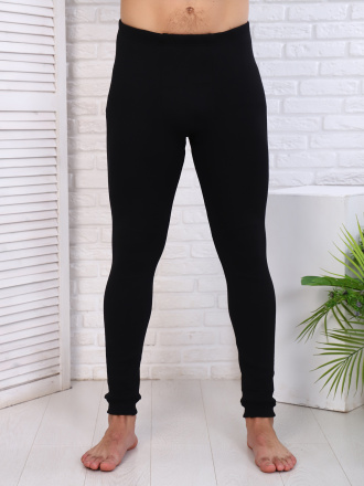 Мужские кальсоны из дышащего, сохраняющего ваше тепло материала черного цвета. Верх кальсон на резинке, внутренний гульфик из хлопчатобумажного полотна.