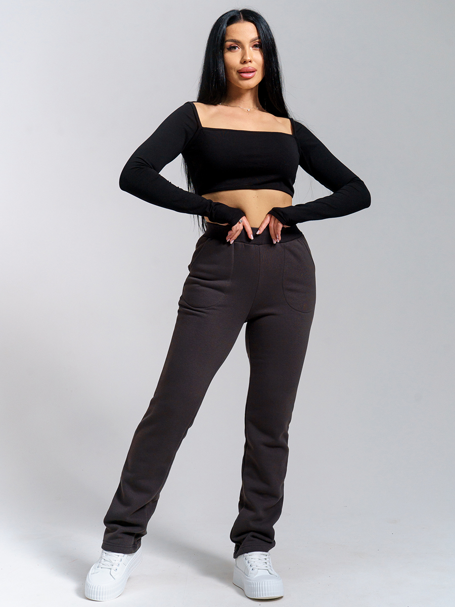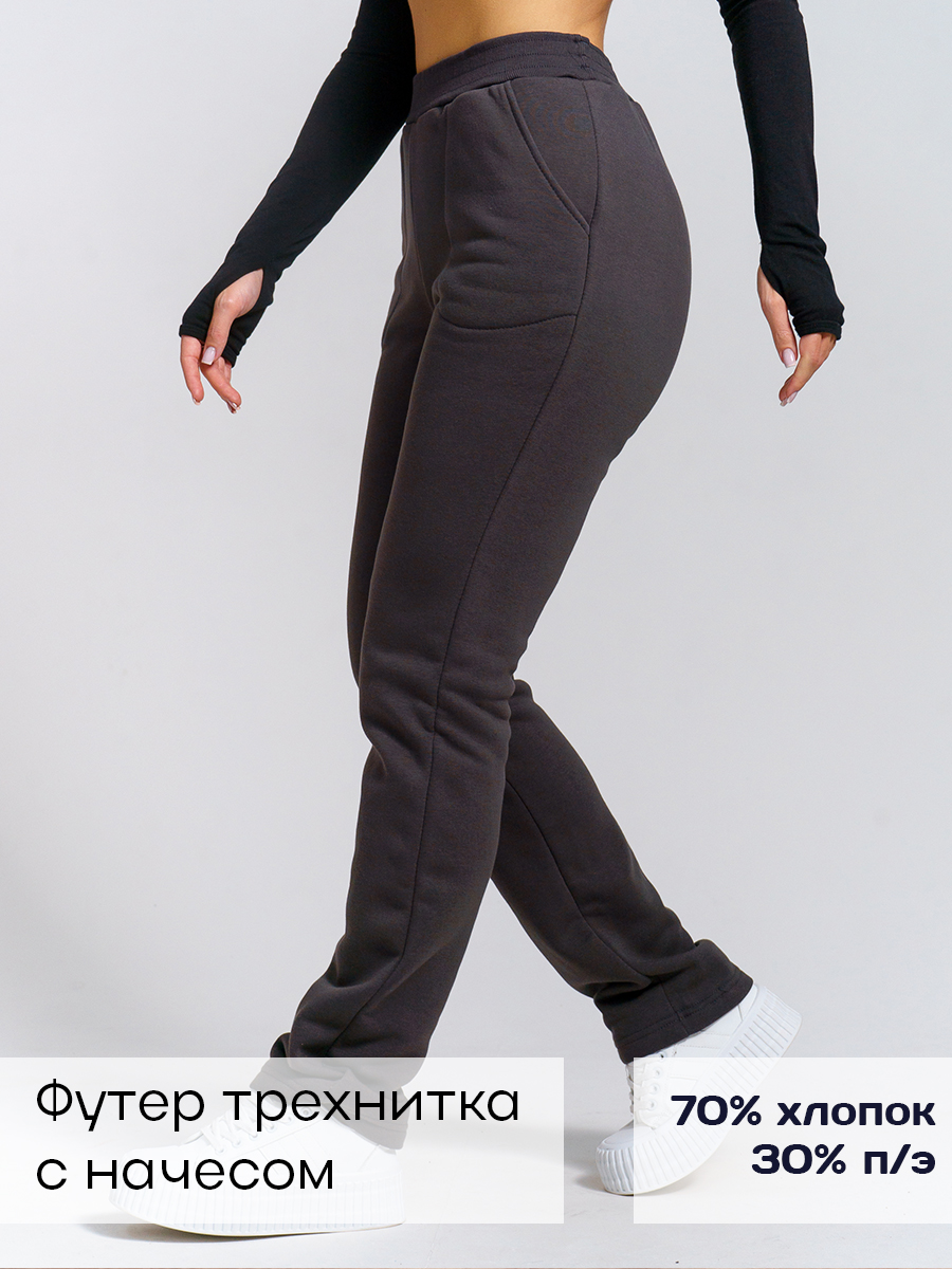 Женские брюки прямого силуэта из футерного полотна с начесом — теплые и удобные для повседневной носки. Модель оснащена практичными карманами и эластичным поясом из кашкорсе, который обеспечивает комфорт и идеальную посадку. Отличный выбор для домашних дел, прогулок и активного отдыха в прохладную погоду. Идеальны для оптовых закупок — высокое качество тканей и пошива по выгодной цене!