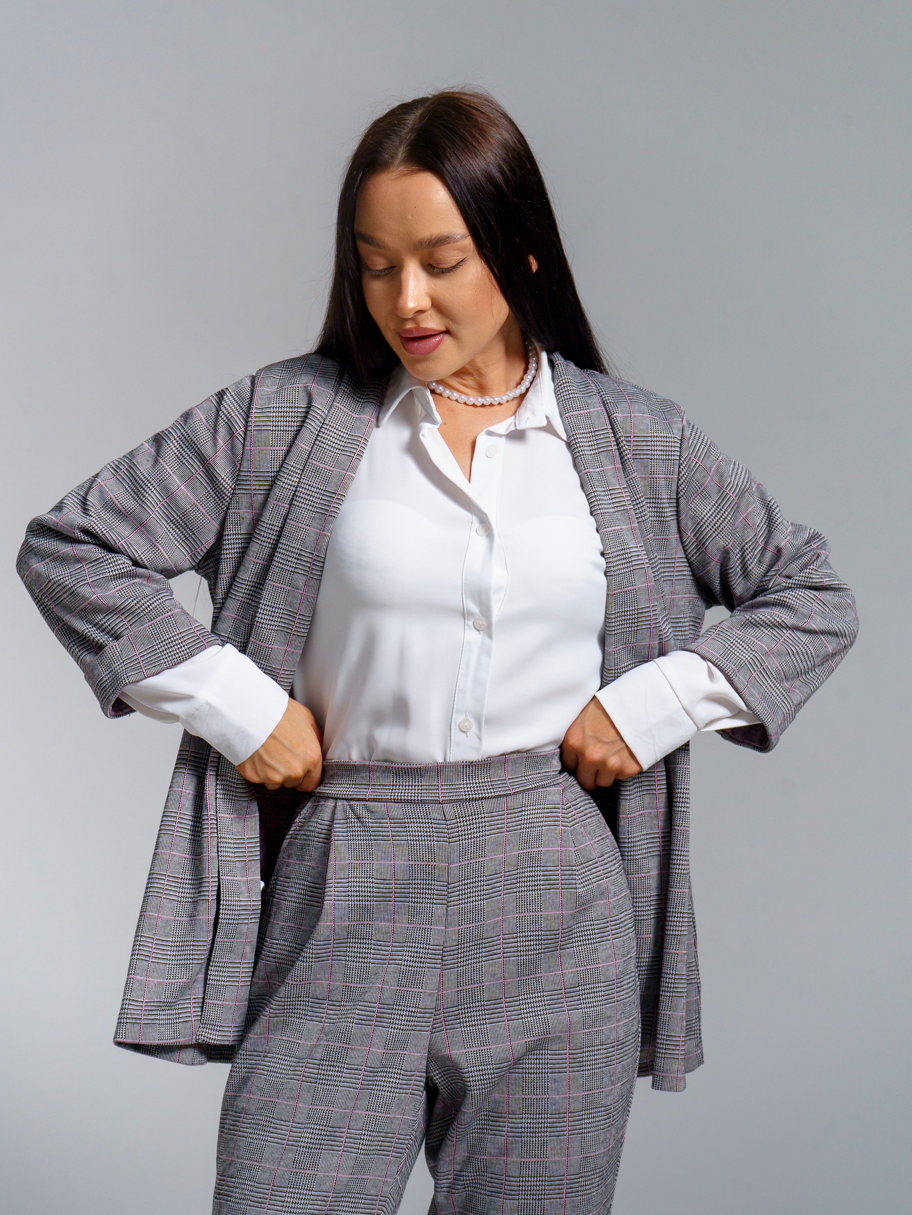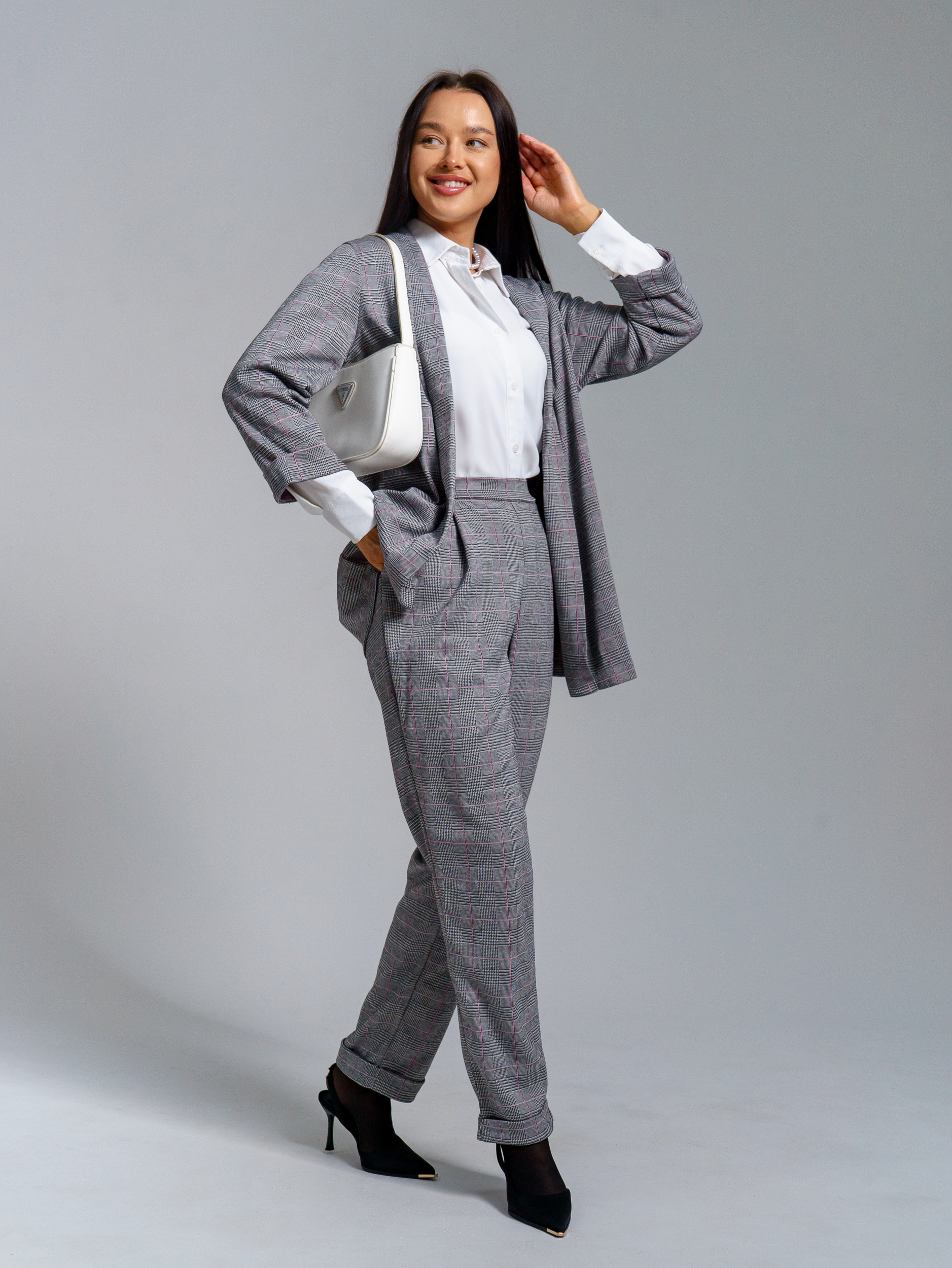 Классические Прямые Брюки с Эластичным Задним Поясом Предлагаем вашему вниманию высококачественные классические прямые брюки, идеально подходящие для тех, кто ценит комфорт и стильный внешний вид одновременно. Эти брюки выполнены из приятной на ощупь ткани жаккарда, обладающей уникальной структурой переплетения нитей, что придает изделию особую прочность и износостойкость. Преимущества брюк: ✔️ Стильный прямой силуэт, подчеркивающий фигуру и подходящий для любого случая. ✔️ Передняя часть классического кроя, обеспечивающая аккуратный внешний вид. ✔️ Задняя часть пояса собрана на резинку, гарантирующую дополнительное удобство и свободу движений. ✔️ Боковые карманы, придающие функциональности и эстетичности дизайну. ✔️ Приятный материал: Состав ткани включает 30% вискозу, 65% полиэстер и 5% лайкру, обеспечивая мягкость, воздухопроницаемость и эластичность. Эта модель станет прекрасным дополнением вашего ассортимента, привлекая внимание клиентов своей изысканной простотой и удобством.
