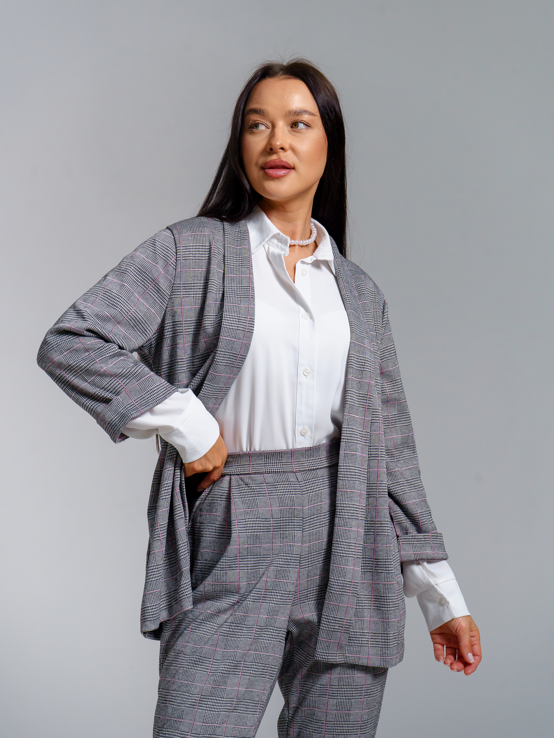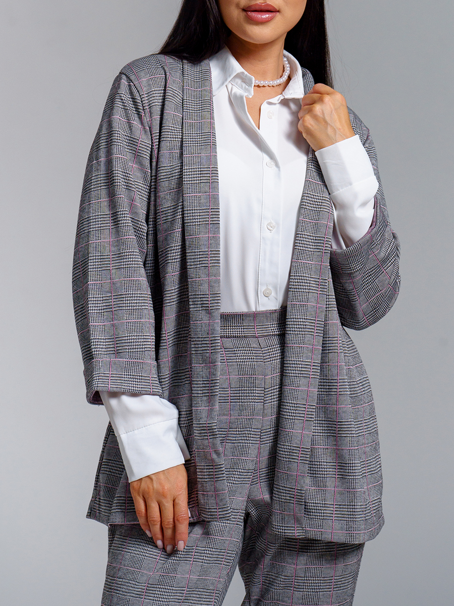 Женский жакет прямого кроя Элегантный и современный жакет прямого кроя станет отличным дополнением к любому гардеробу. Модель изготовлена из качественной ткани жаккард, отличается приятным внешним видом и высоким уровнем комфорта. Особенности товара: Прямой крой: создает визуальную стройность и подходит девушкам разных типов фигур. Без застежки: лаконичная форма позволит сочетать с различными элементами одежды, дополнив как повседневный, так и офисный стиль. Укороченный рукав: добавляет легкости и свободы движений. Высококачественный состав ткани: 30% вискоза, 65% полиэстер, 5% лайкра, что обеспечивает устойчивость к деформации и долгий срок службы. Наш ассортимент представлен размерами от 46 до 56, позволяя подобрать оптимальный вариант для всех представительниц прекрасного пола. Используйте нашу продукцию для расширения ассортимента Вашего магазина и привлечения новых покупателей. Надежный поставщик качественного женского гардероба готов предложить выгодные условия сотрудничества и своевременную доставку продукции.