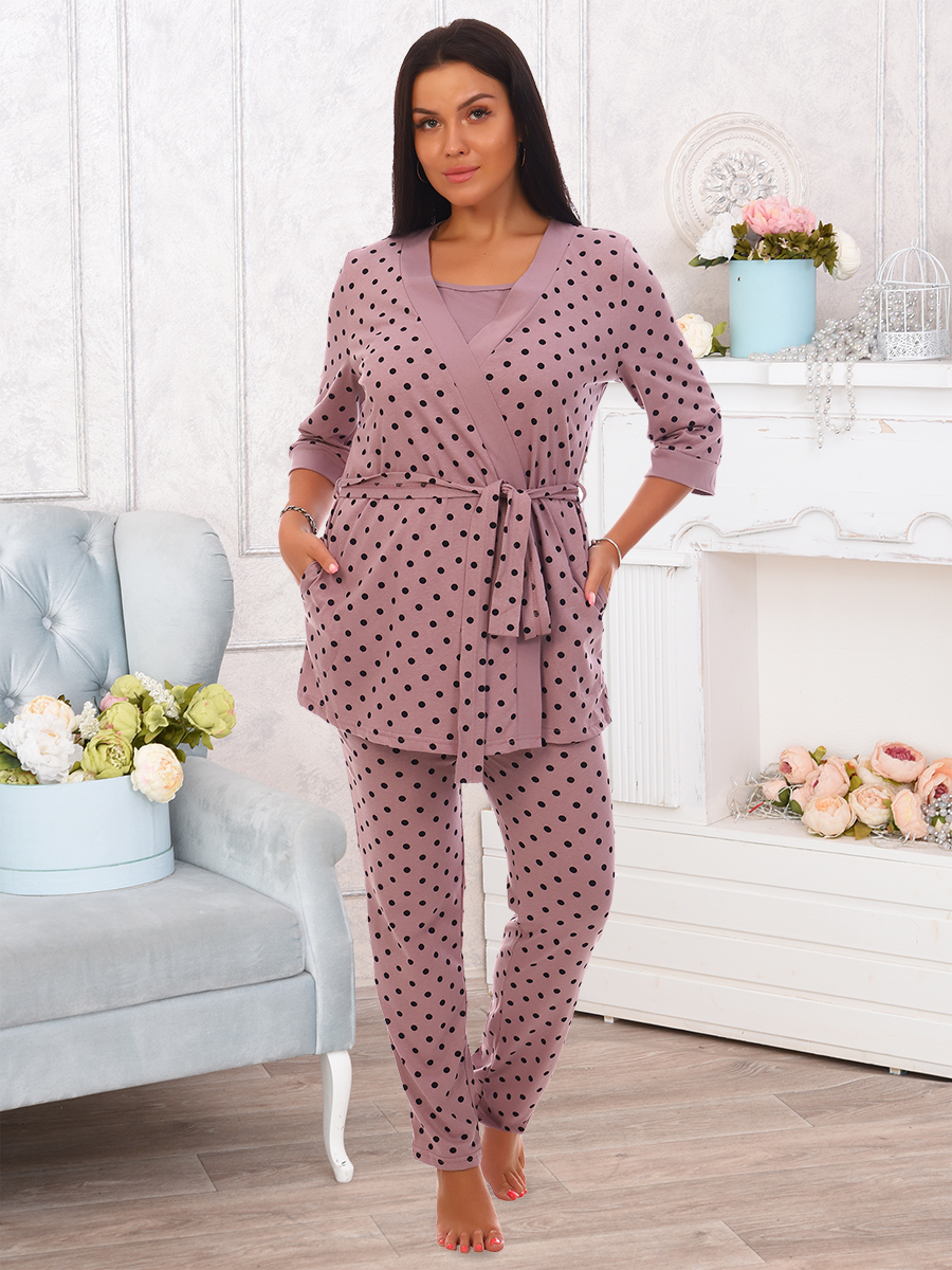 Нежность(лиловый) пеньюар+топ+брюки р. 50, 100% хлопок