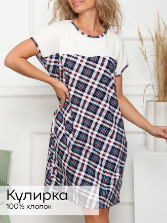 Стильная туника с контрастными кокетками. В боковых швах выполнены карманы, срезы рукавов обработаны манжетами.