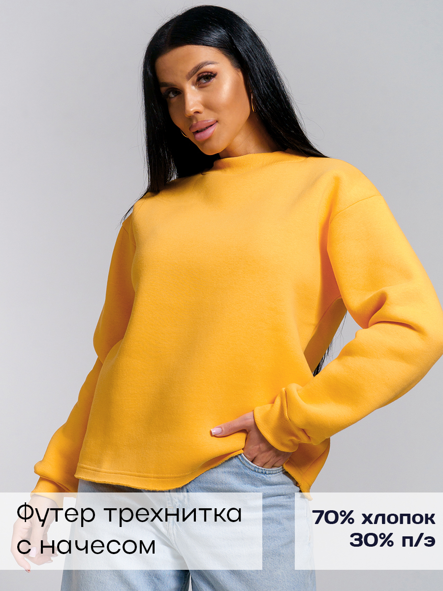 Толстовка женская утепленная с оригинальной нашивкой в технике 3D. Манжеты и горловина выполнены из кашкорсе, нижний срез толстовки оставлен открытым.