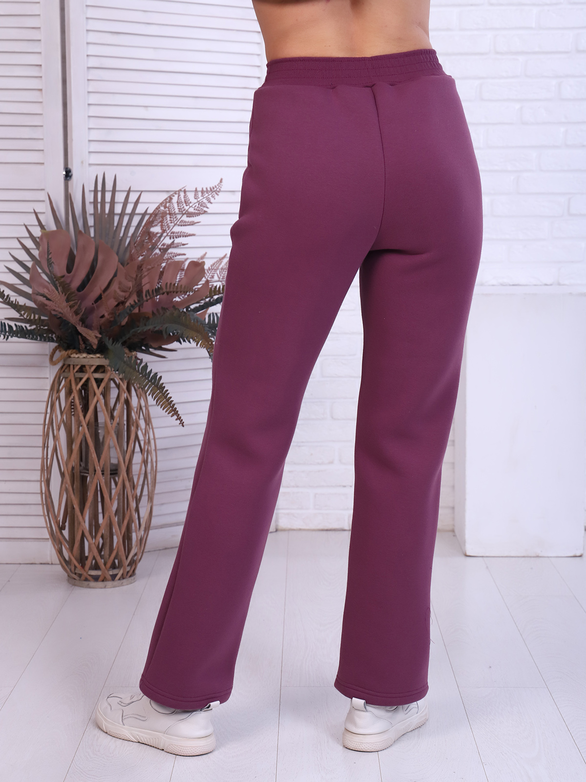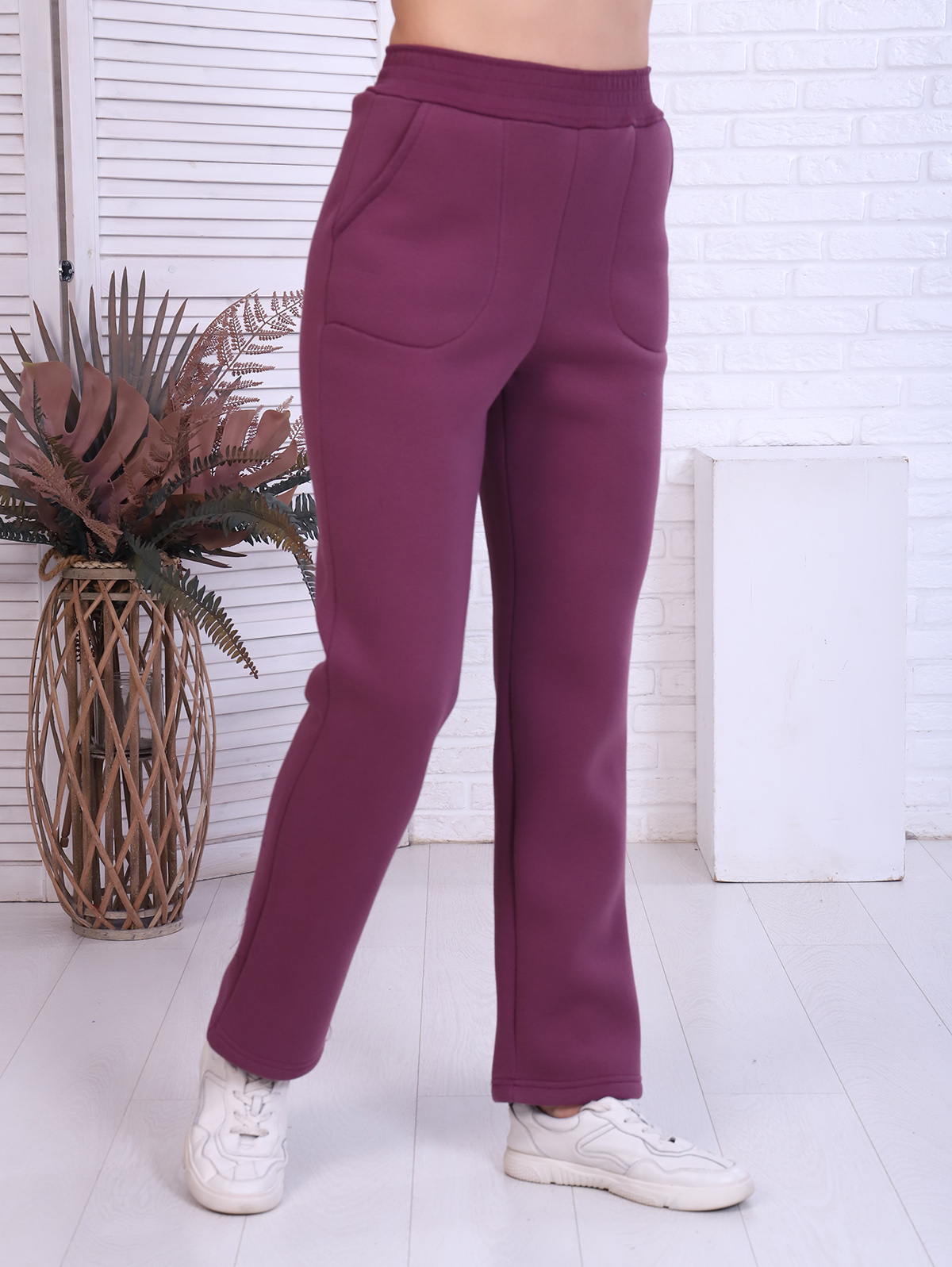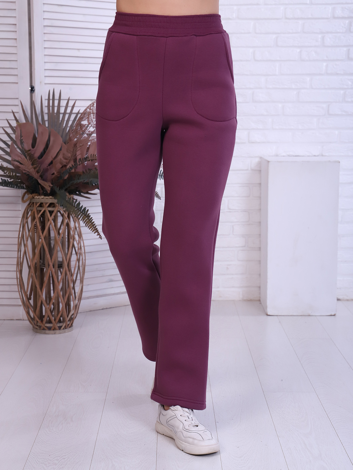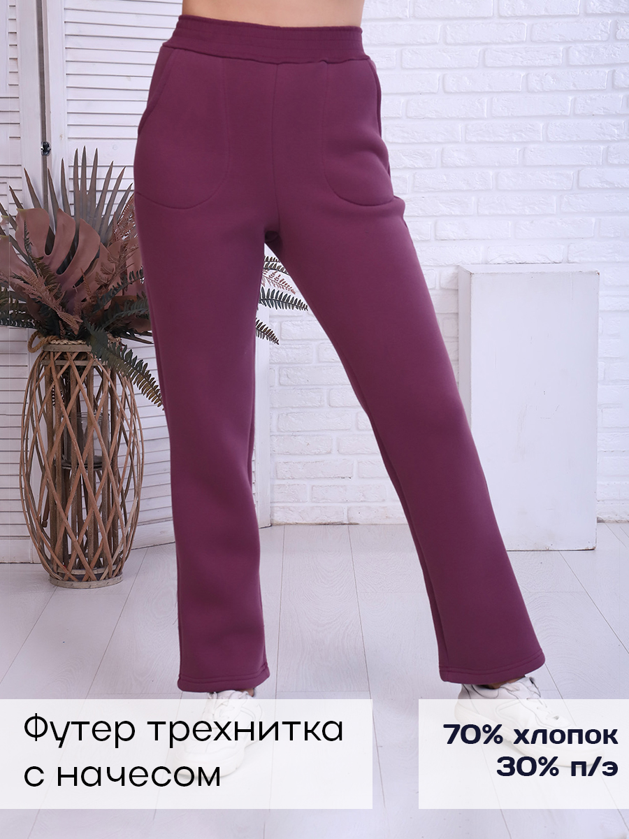 Женские брюки прямого силуэта из футерного полотна с начесом — теплые и удобные для повседневной носки. Модель оснащена практичными карманами и эластичным поясом из кашкорсе, который обеспечивает комфорт и идеальную посадку. Отличный выбор для домашних дел, прогулок и активного отдыха в прохладную погоду. Идеальны для оптовых закупок — высокое качество тканей и пошива по выгодной цене!