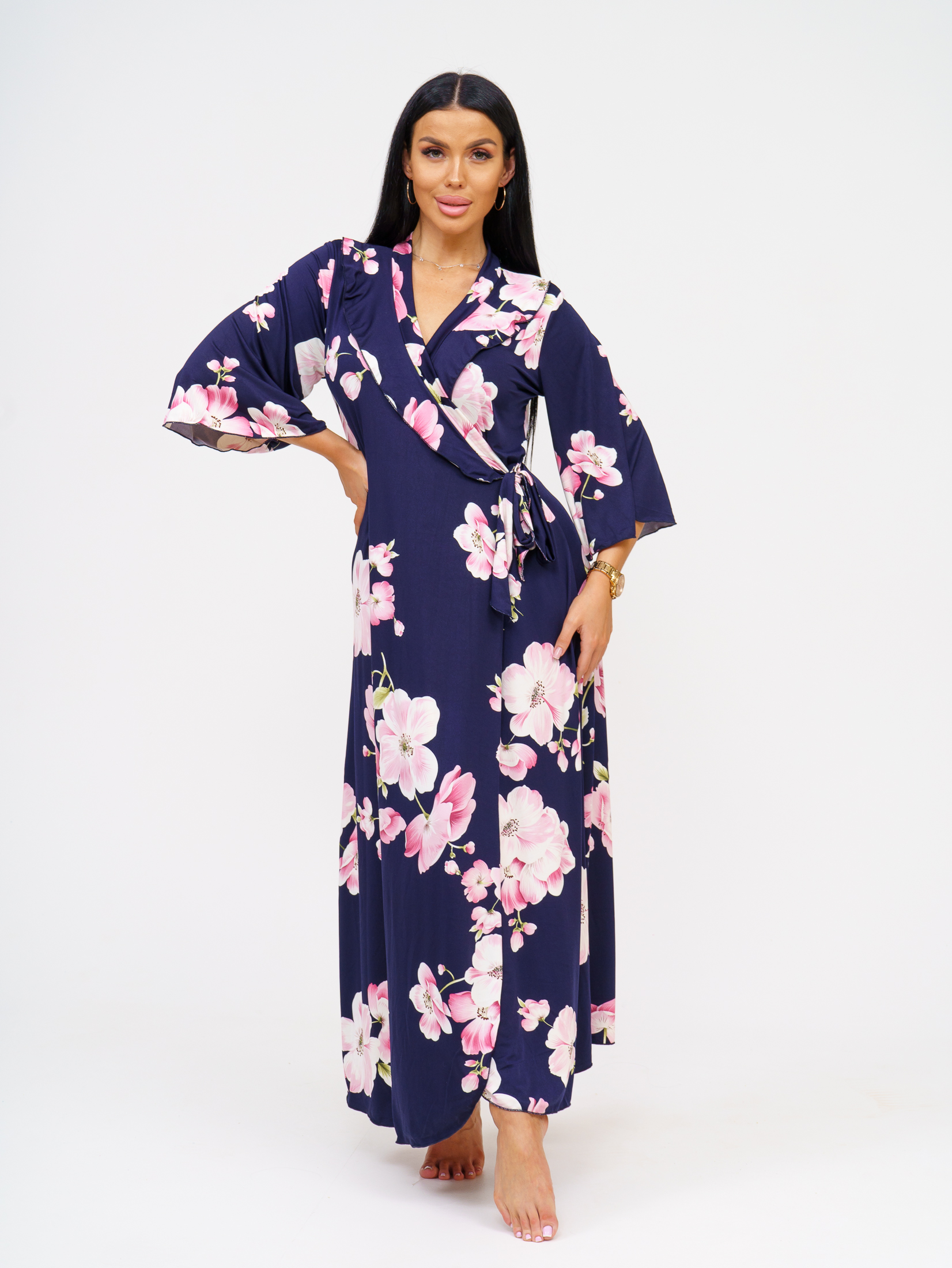 Представляем вашему вниманию наш новый оригинальный женский халат, выполненный из легкой и струящейся ткани масло (100% полиэстер). Этот халат станет идеальным выбором для тех, кто ценит стиль и комфорт в домашней одежде! Основные характеристики: Элегантные расклешенные рукава: Придают халату утонченный и романтичный вид, добавляя нотку шарма в повседневный образ. Оборка на горловине: Вырез горловины украшен изящной оборкой, что делает халат еще более привлекательным и женственным. Качественная обработка срезов: Специальная строчка на срезах обеспечивает долговечность и аккуратный внешний вид, даже после многочисленных стирок. Удобные завязки: Халат оснащен внутренними и внешними завязками, позволяющими регулировать посадку и обеспечивать комфорт при носке. Размеры: Доступен в размерах 46-60, что позволяет каждой женщине найти идеальный вариант для себя. Длина халата — миди, что придает ему универсальность и делает его подходящим для различных ситуаций. Этот халат станет отличным дополнением к вашему ассортименту и привлечет внимание ваших клиентов, ценящих стиль и комфорт. Заказывайте оптом и предложите своим покупателям уникальную модель, которая станет любимым элементом домашнего гардероба!