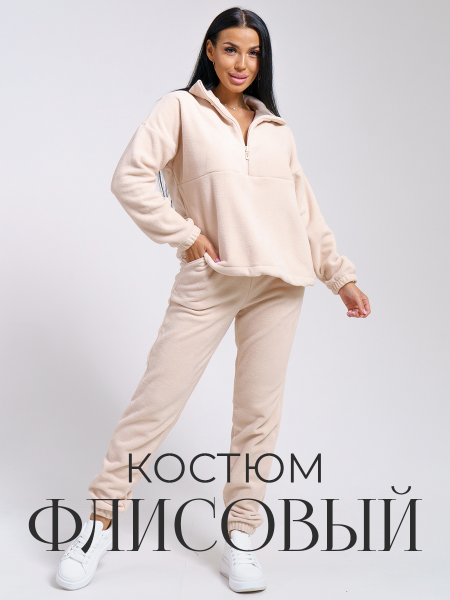 Теплый флисовый комплект оверсайз с толстовкой на молнии и брюками изготовлен из приятного на ощупь материала, который дарит свободу движений и комфорт. Низ рукавов и брюк на резинке, в боковых швах брюк карманы.
