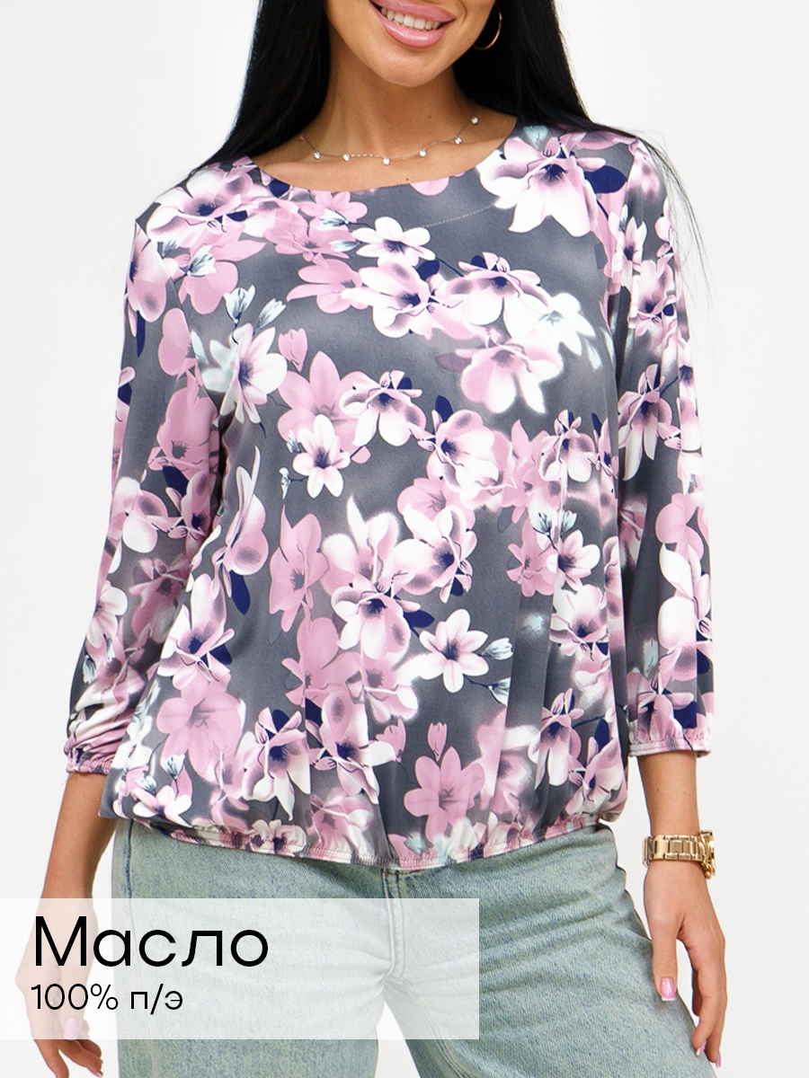 Джемпер женский с круглым вырезом горловины и длинным рукавом. Рукав 7/8 на резинке.