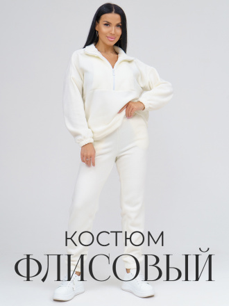 Теплый флисовый комплект оверсайз с толстовкой на молнии и брюками изготовлен из приятного на ощупь материала, который дарит свободу движений и комфорт. Низ рукавов и брюк на резинке, в боковых швах брюк карманы.