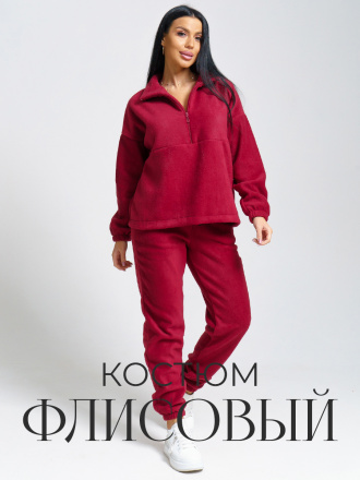 Теплый флисовый комплект оверсайз с толстовкой на молнии и брюками изготовлен из приятного на ощупь материала, который дарит свободу движений и комфорт. Низ рукавов и брюк на резинке, в боковых швах брюк карманы.