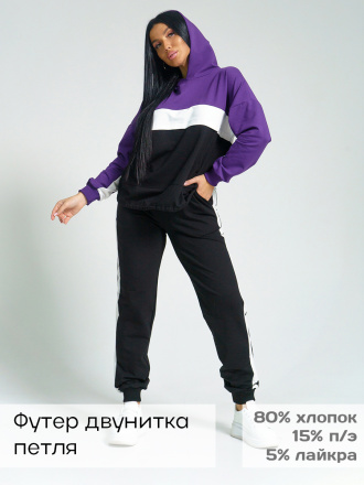 Костюм оверсайз с толстовкой на молнии и брюками изготовлен из приятного велюра, который дарит свободу движений и комфорт. Низ рукавов и брюк на резинке, в боковых швах брюк карманы.