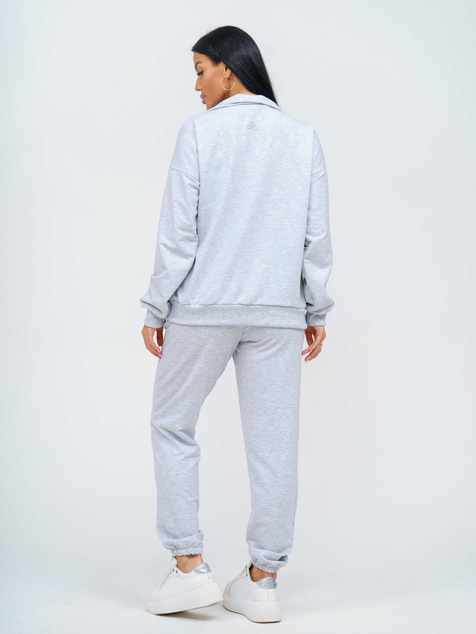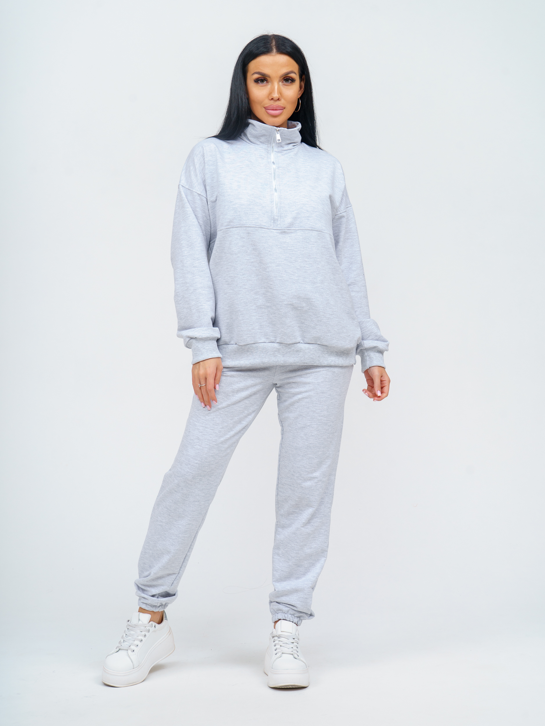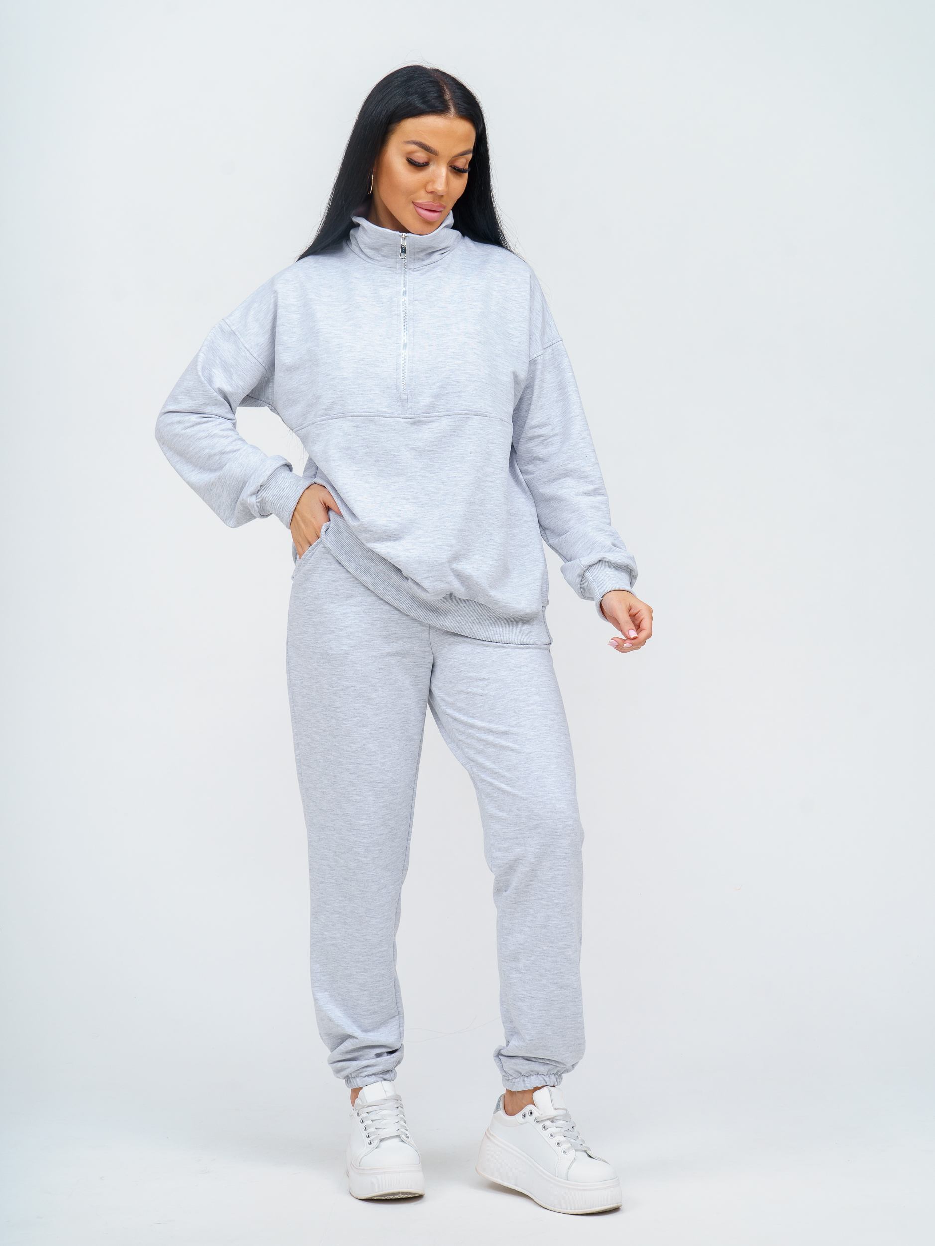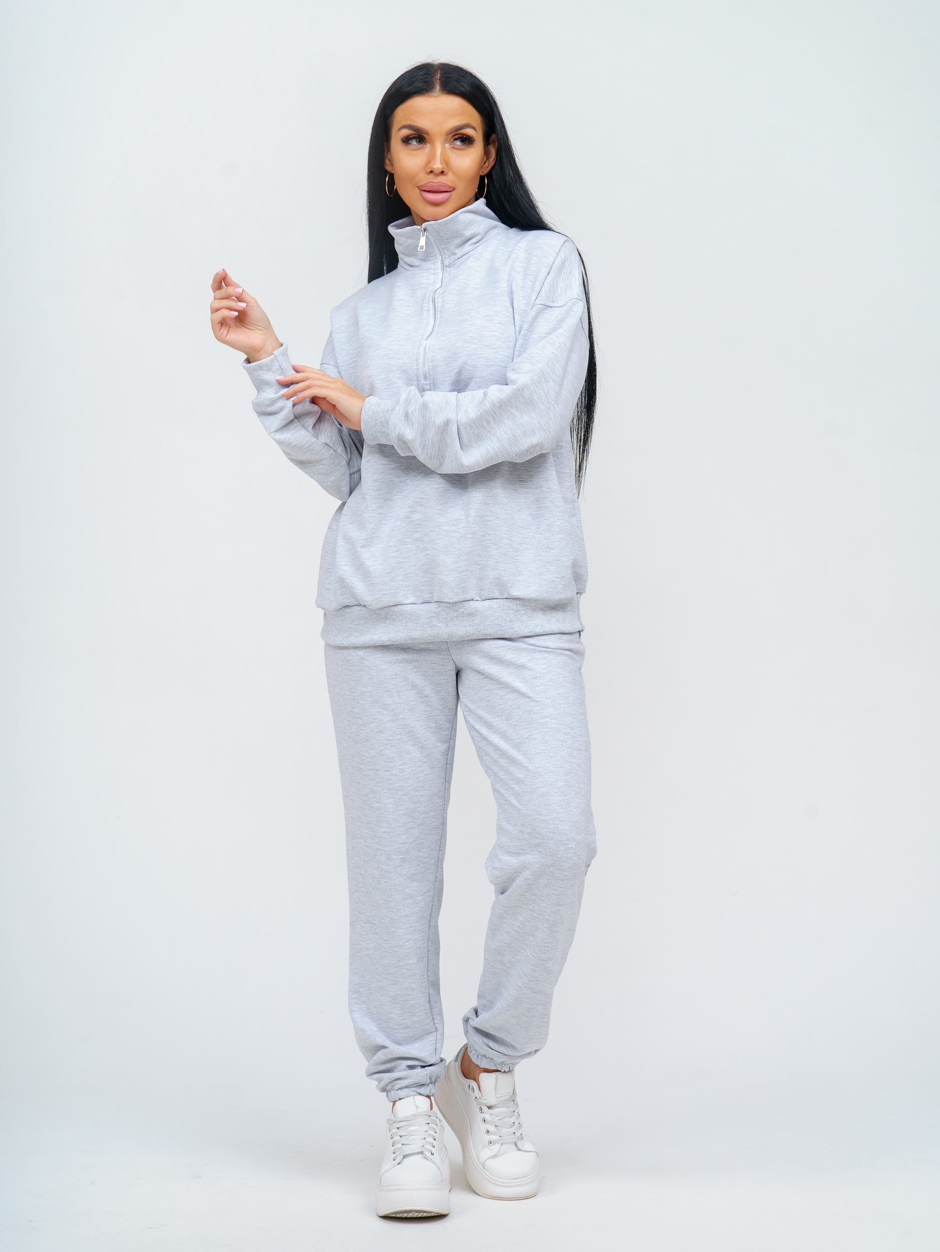 Представляем вашему вниманию стильный женский костюм — брюки и худи из высококачественного футера, сочетающего 75% хлопка, 20% полиэстера и 5% лайкры. Такой состав гарантирует комфорт, отличную посадку по фигуре и долговечность, а эластичная лайкра обеспечивает свободу движений и превосходную форму изделия даже после многочисленных стирок. Брюки с удобной резинкой на низу создают модный силуэт и предотвращают скатывание ткани, а отрезные карманы с оригинальной брендированной печатью подчеркивают уникальность и стильность изделия. Зип-худи оснащено функциональной молнией и украшено фирменной печатью на спине под воротником, что являет собой отличительный знак подлинности и дизайнерского подхода. Этот костюм — идеальное решение для активного повседневного образа, работы, прогулок или занятий спортом. Он гармонично сочетается с кроссовками и аксессуарами, создавая современный и выразительный лук. Для оптовых покупателей — выгодное предложение, поднимающее ассортимент и привлекающее внимание требовательной аудитории, ценящей качество и оригинальность в каждой детали.