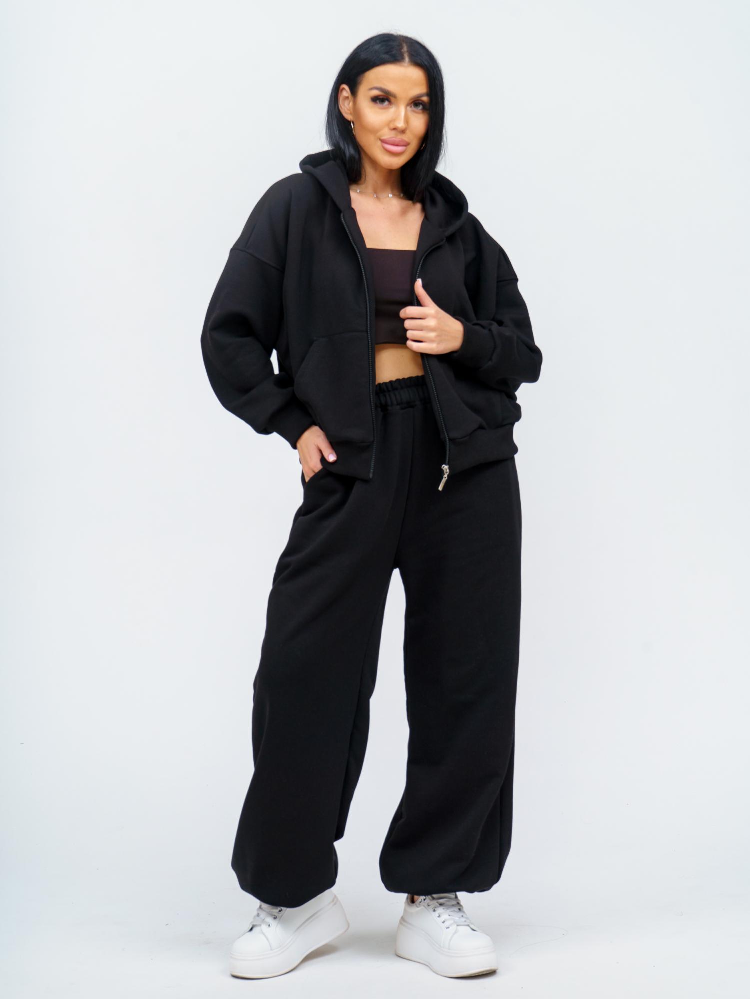 Женский костюм из футера с микроначесом — идеальный выбор для комфорта и стиля в любое время года. Толстовка с капюшоном оснащена молнией и удобными карманами. Брюки свободного кроя имеют эластичную талию, регулируемые бедра и затяжки внизу штанин. Материал мягкий, теплый и приятный к телу, легко стирается и сохраняет форму. Универсален для спорта, дома и повседневного использования. Стильно, комфортно и практично — ваш новый любимый образ!