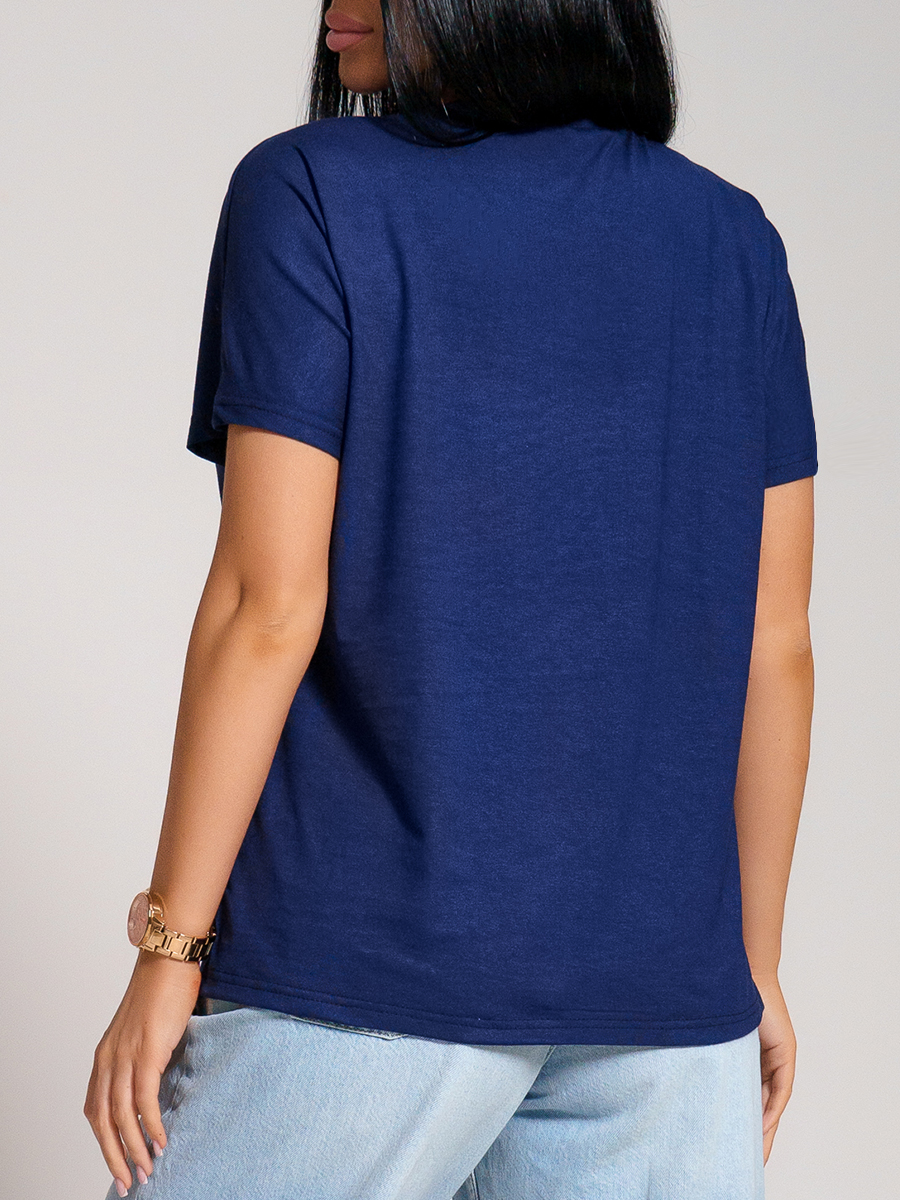 Футболка женская с коротким рукавом, горловина V-образной формы, на детали переда печать.