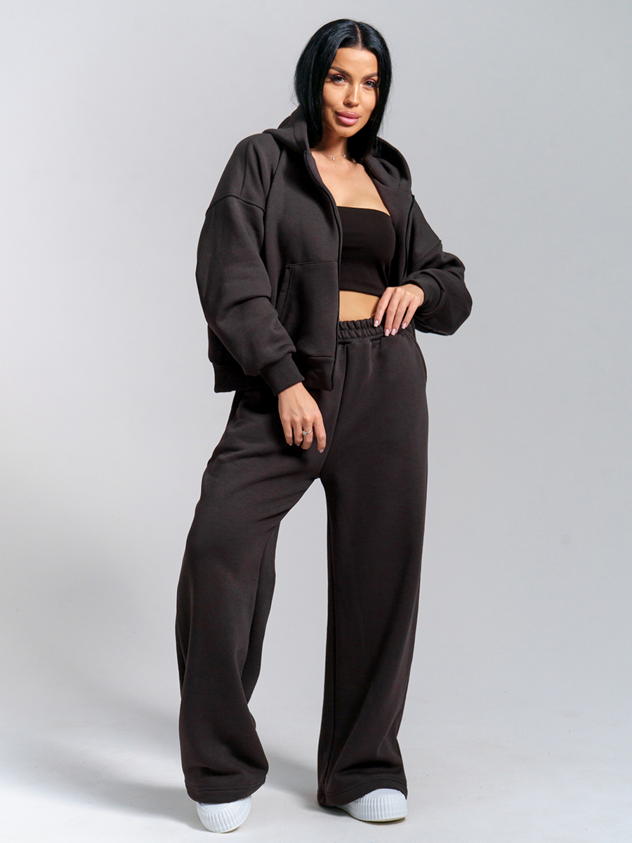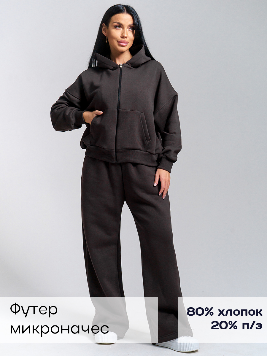 Представляем вашему вниманию стильный и уютный женский костюм из качественного материала — футера с микрочесом. Этот комплект станет идеальным выбором для любого сезона благодаря своей мягкости, комфорту и теплу. Идеально подходит для повседневной носки, отдыха дома или занятий спортом. Описание костюма: Толстовка с капюшоном: Материал: Футер с микрочесом Особенности: Капюшон, молния спереди, удобные карманы Дизайн: Современный, универсальный, подойдет к любому стилю Брюки свободные: Материал: Футер с микрочесом Особенности: Карманы, резинка на талии, дополнительные шнурки для регулировки посадки на бедрах, затяжки внизу штанин Дизайн: Свободный крой, комфортные и элегантные одновременно Преимущества комплекта: Комфорт: Мягкий материал приятен к телу, обеспечивает тепло и удобство даже при длительном ношении. Универсальность: Подходит как для активного образа жизни, так и для домашнего отдыха. Стильный дизайн: Простота и лаконичность делают этот костюм универсальным дополнением гардероба каждой женщины. Практичность: Легко стирается, быстро сохнет, сохраняет форму и цвет после многократных стирок. Наш оптовый сайт предлагает выгодные условия сотрудничества, большой ассортимент продукции и быструю доставку. Выбирайте качество и комфорт вместе с нами! Цены