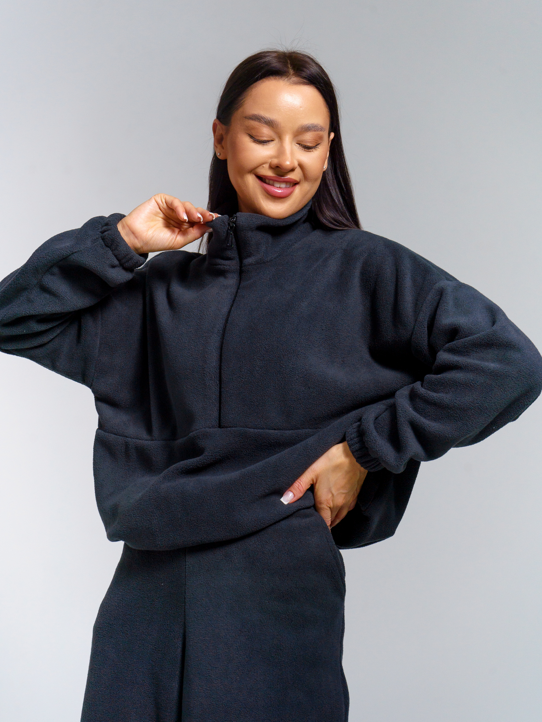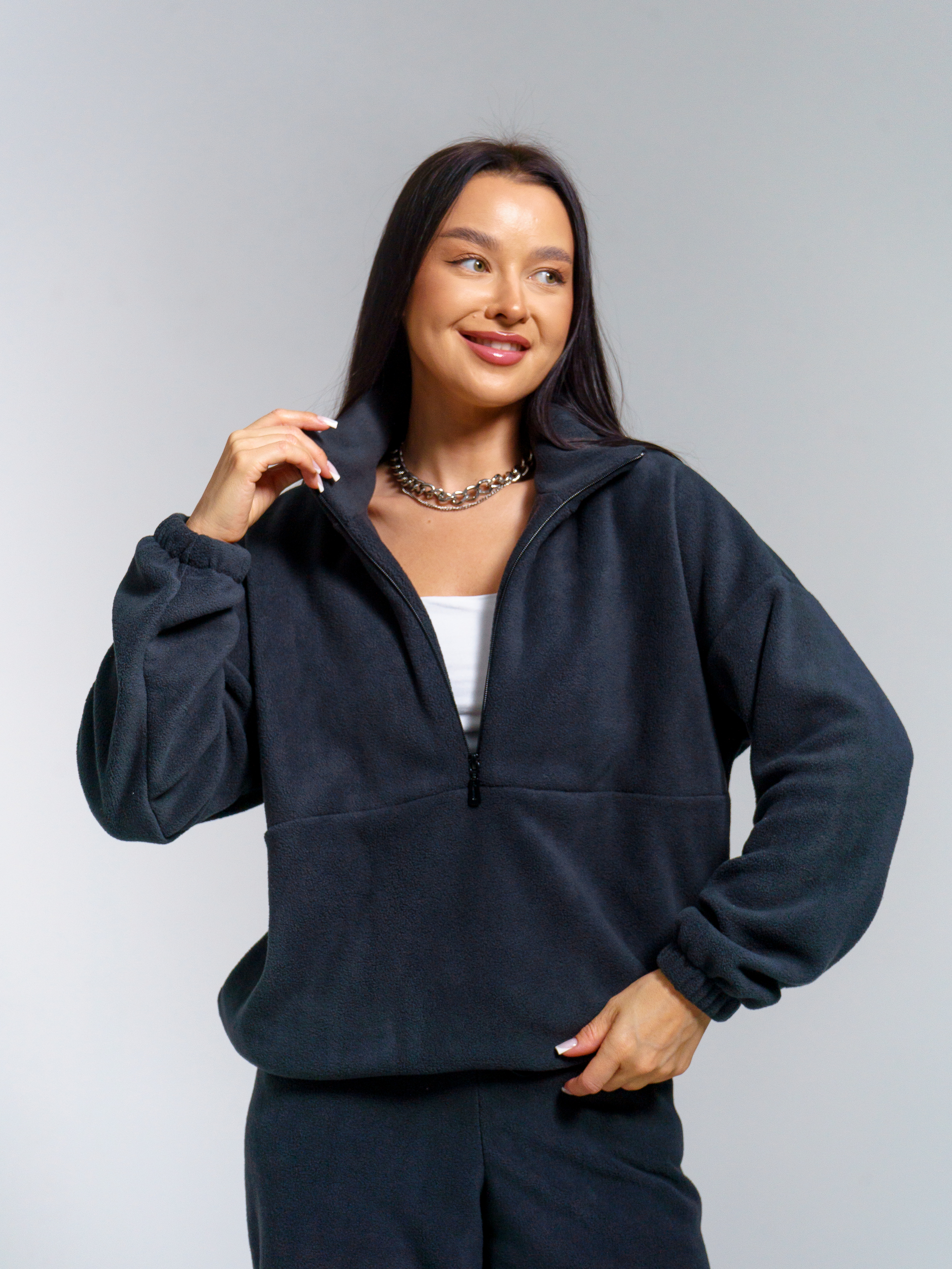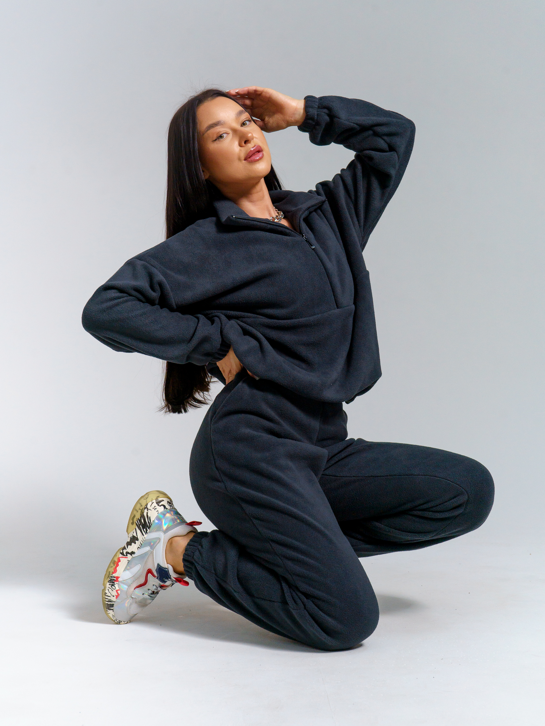 Теплый флисовый женский костюм оверсайз Этот стильный и уютный костюм станет идеальным выбором для прохладных дней. Изготовленный из мягкого и приятного на ощупь флиса, он обеспечивает тепло и комфорт даже в самую холодную погоду. Свободный покрой позволяет свободно двигаться, сохраняя чувство свободы и удобства. Особенности костюма: Толстовка с молнией спереди для удобной регулировки температуры. По низу толстовки предусмотрена удобная резинка с регулируемым ползунком, позволяющая дополнительно зафиксировать форму и сохранить тепло. Рукава и низ брюк оснащены эластичной резинкой, удерживая тепло и обеспечивая дополнительную защиту от ветра. Удобные карманы в боковых швах брюк позволяют хранить необходимые мелочи. Материал отличается высоким качеством и долговечностью, гарантируя долгий срок службы изделия. Этот костюм подойдет как для повседневного использования, так и для активного отдыха, прогулок на свежем воздухе или занятий спортом. Создан специально для тех, кто ценит комфорт, тепло и стиль одновременно.