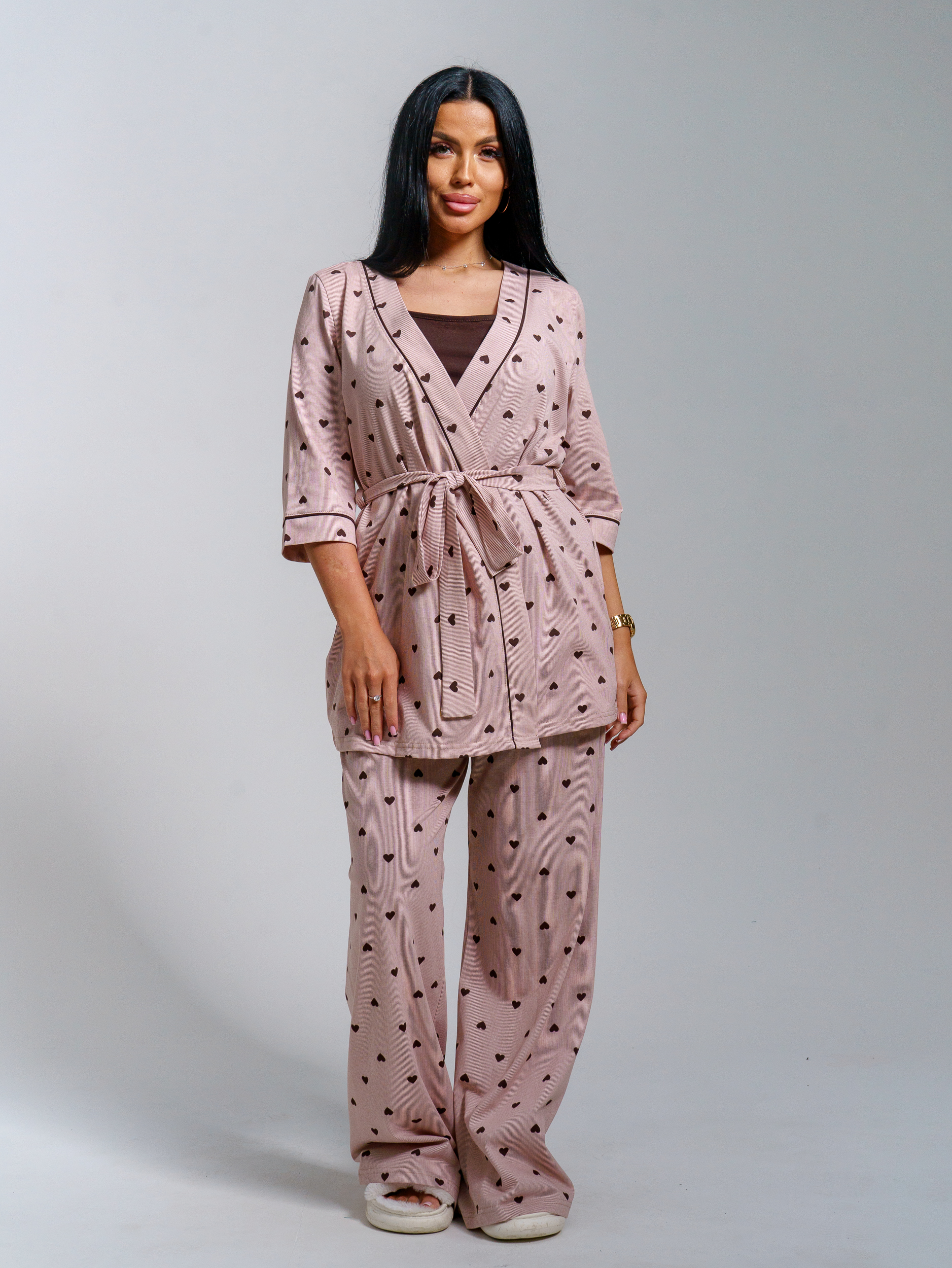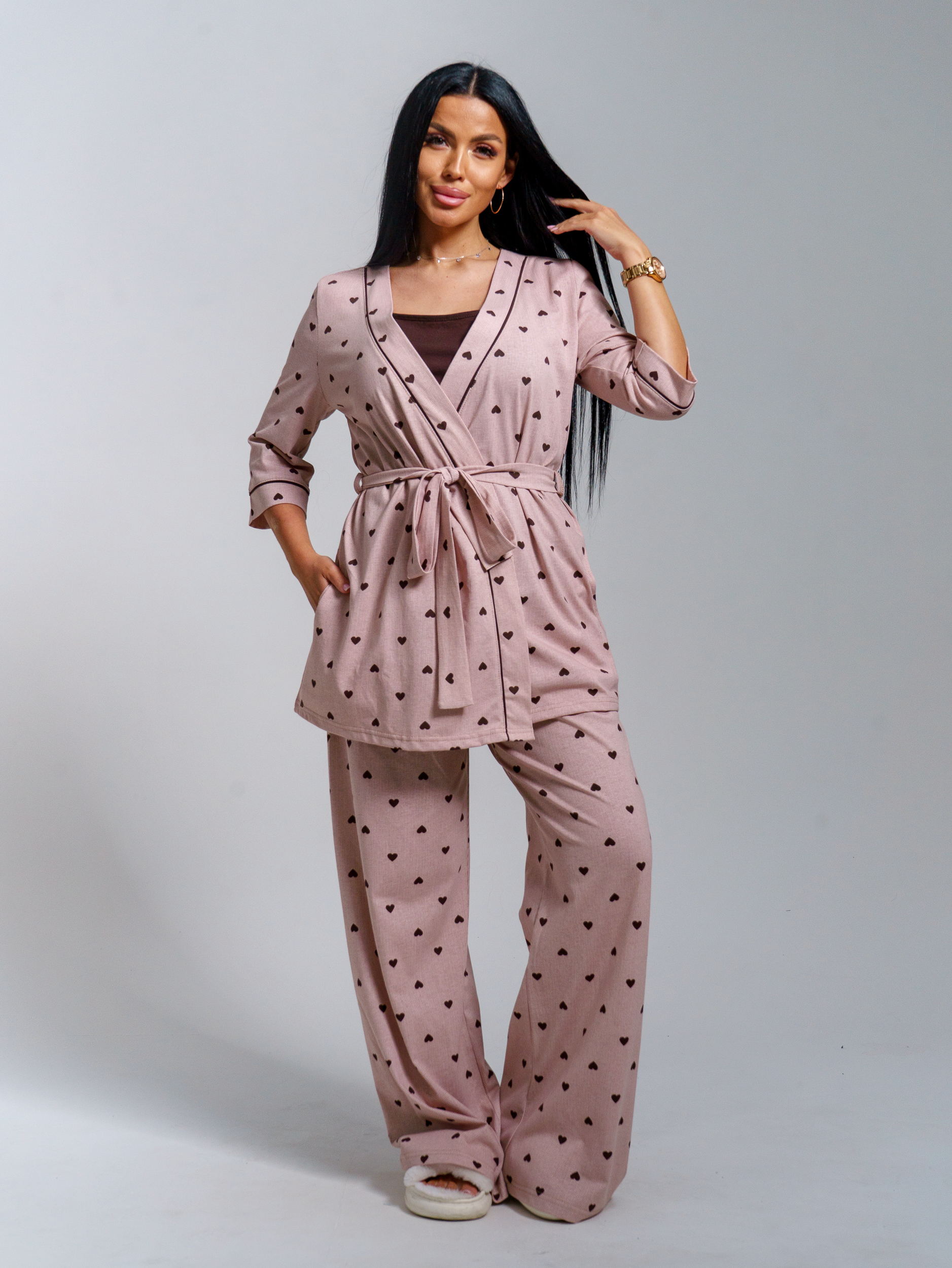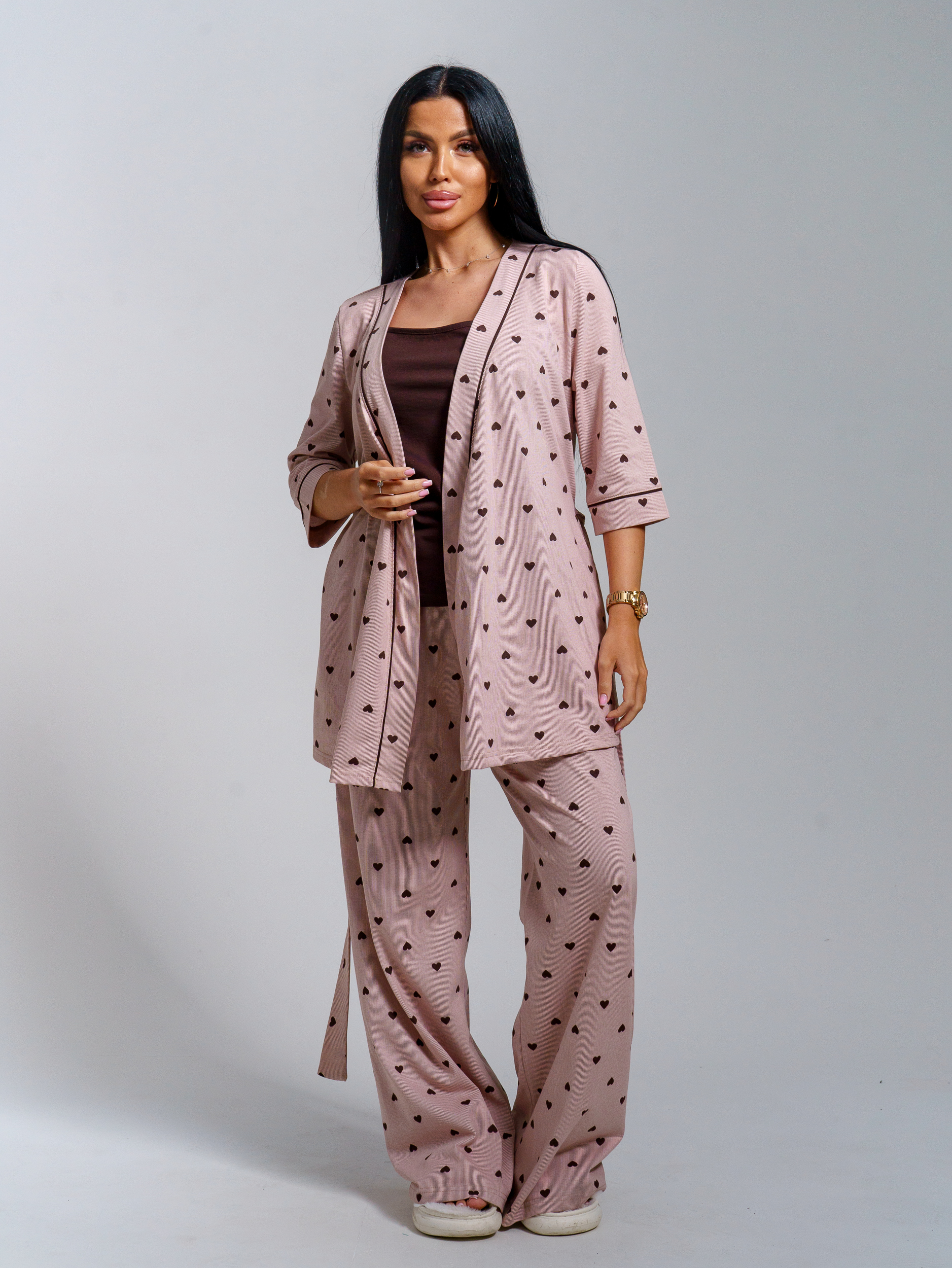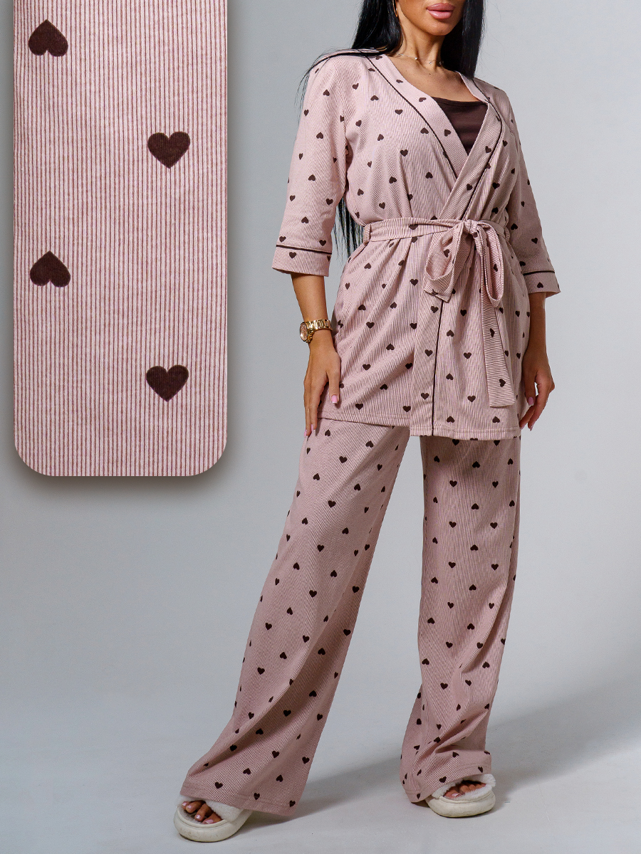 Женская пижама-тройка из хлопка Нежная и удобная комплектная пижама, созданная специально для комфортного сна и домашнего отдыха. Мягкий трикотажный состав из натурального хлопка гарантирует приятное ощущение на коже и поддерживает оптимальный микроклимат тела.
