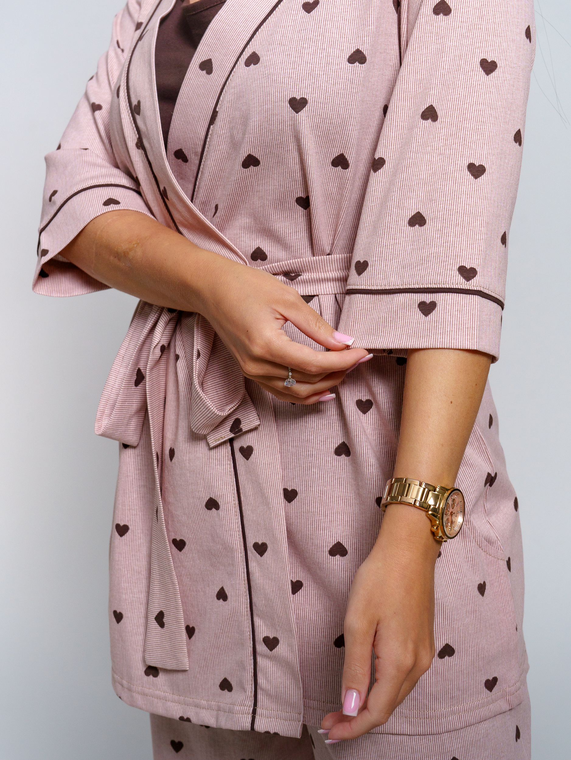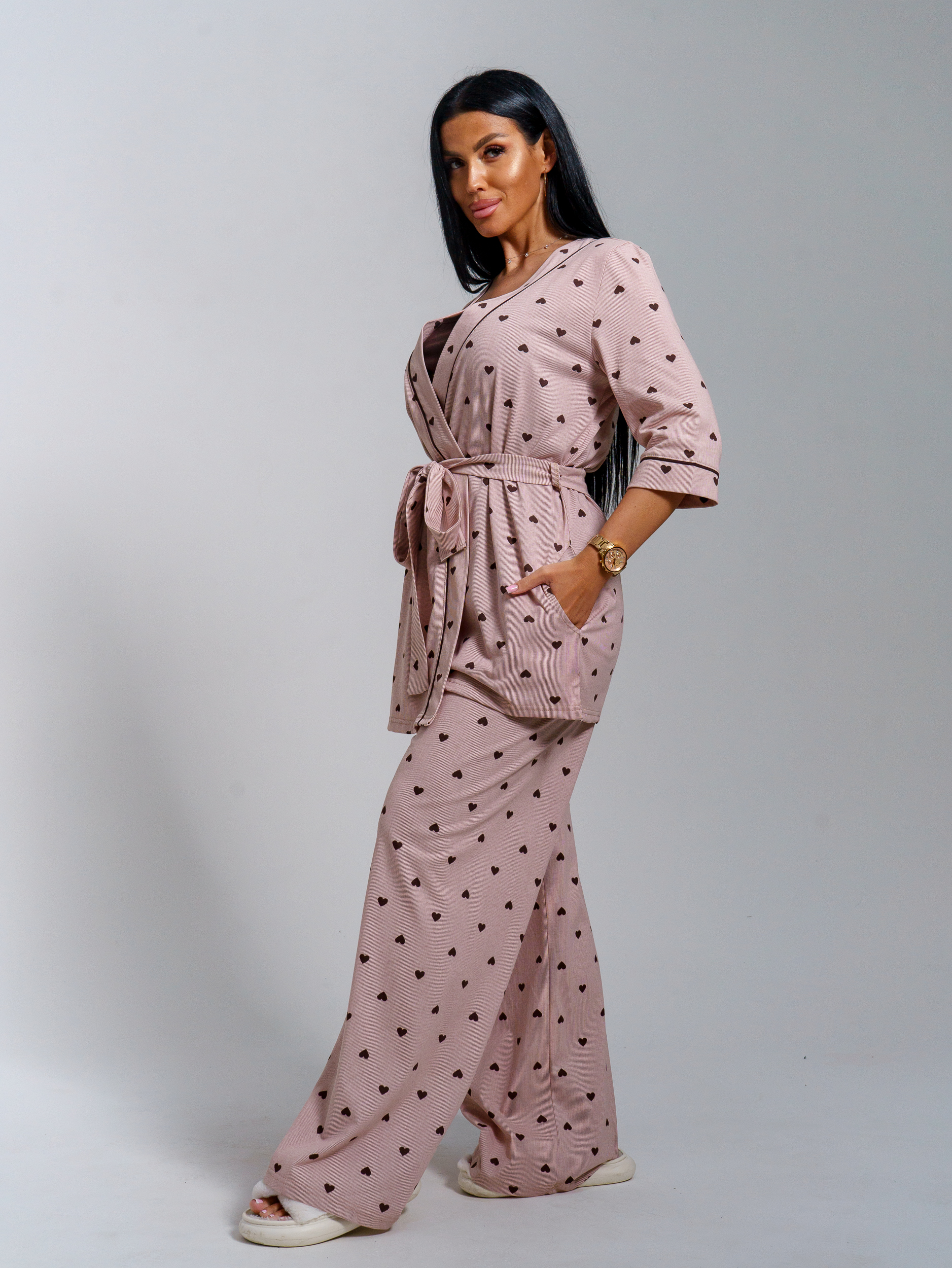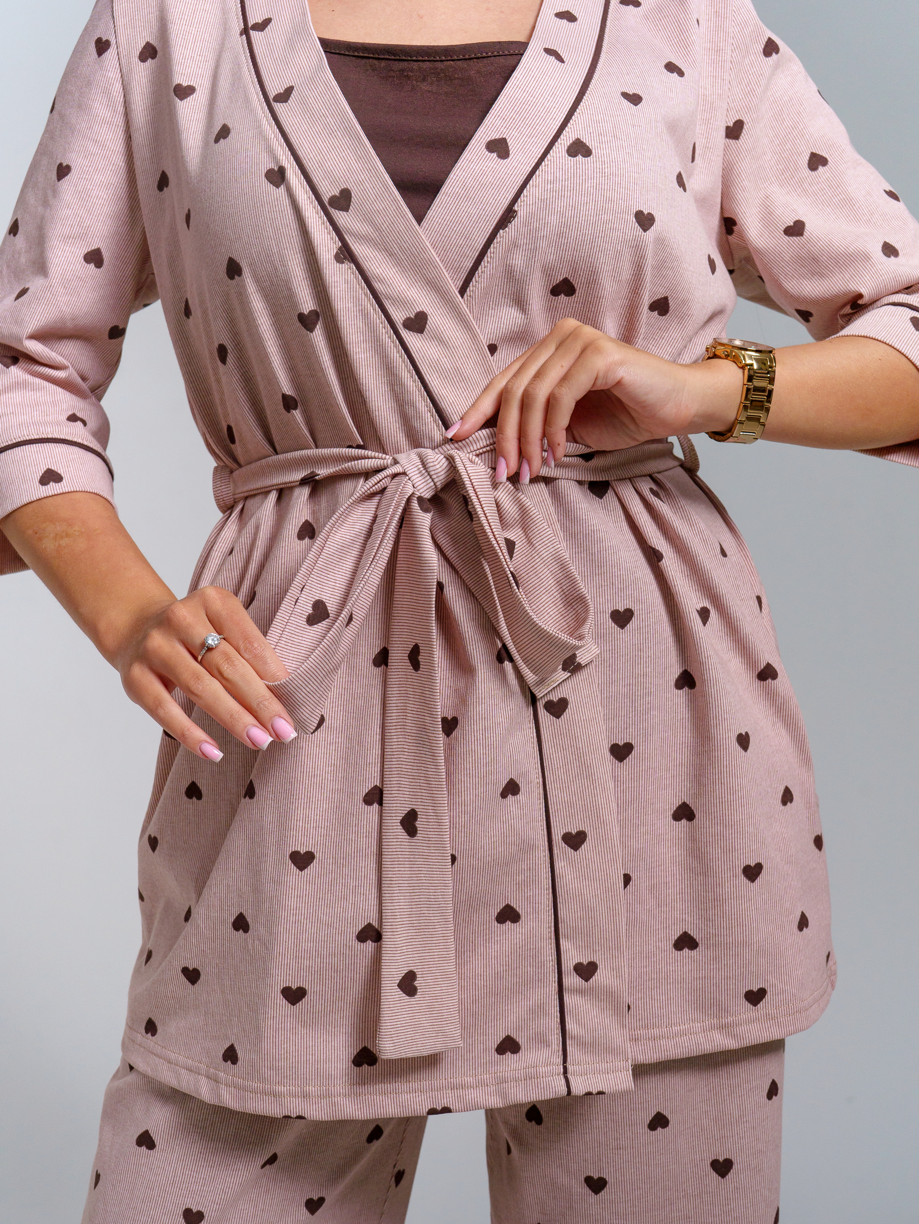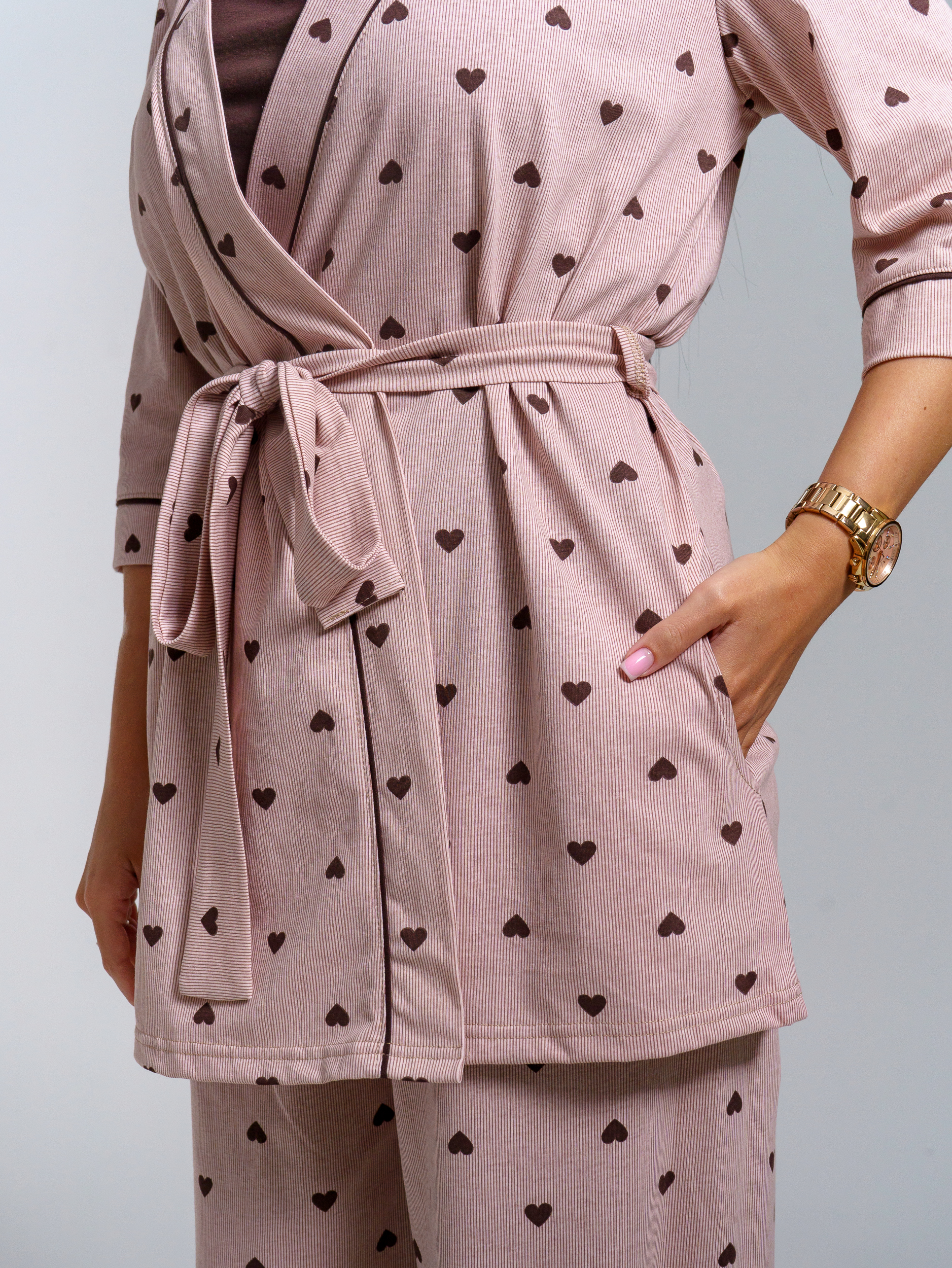 Женская пижама-тройка из хлопка Нежная и удобная комплектная пижама, созданная специально для комфортного сна и домашнего отдыха. Мягкий трикотажный состав из натурального хлопка гарантирует приятное ощущение на коже и поддерживает оптимальный микроклимат тела.