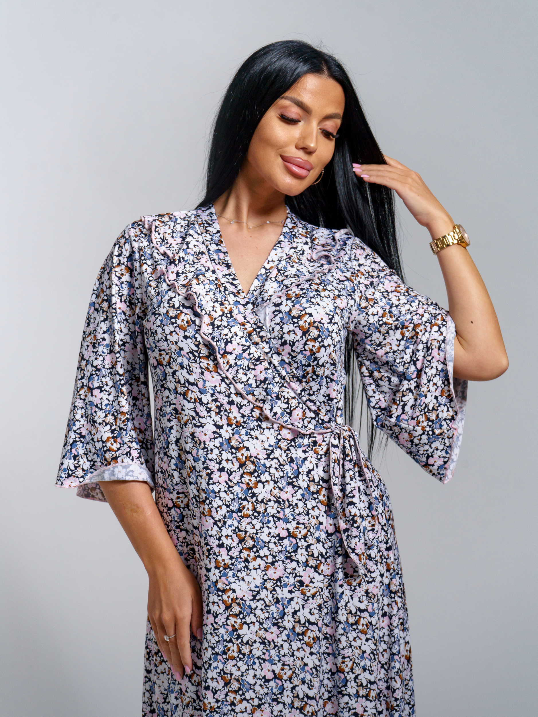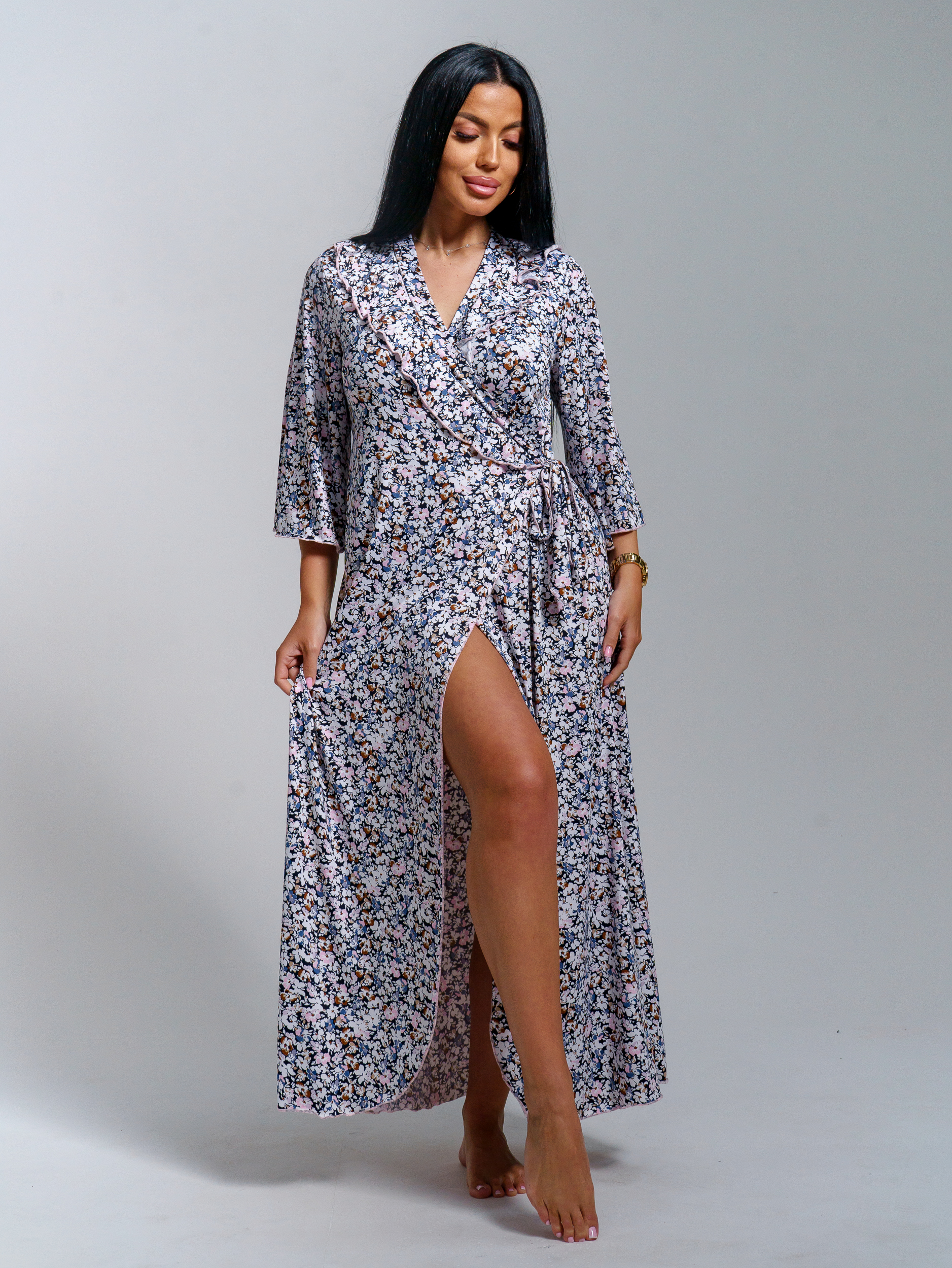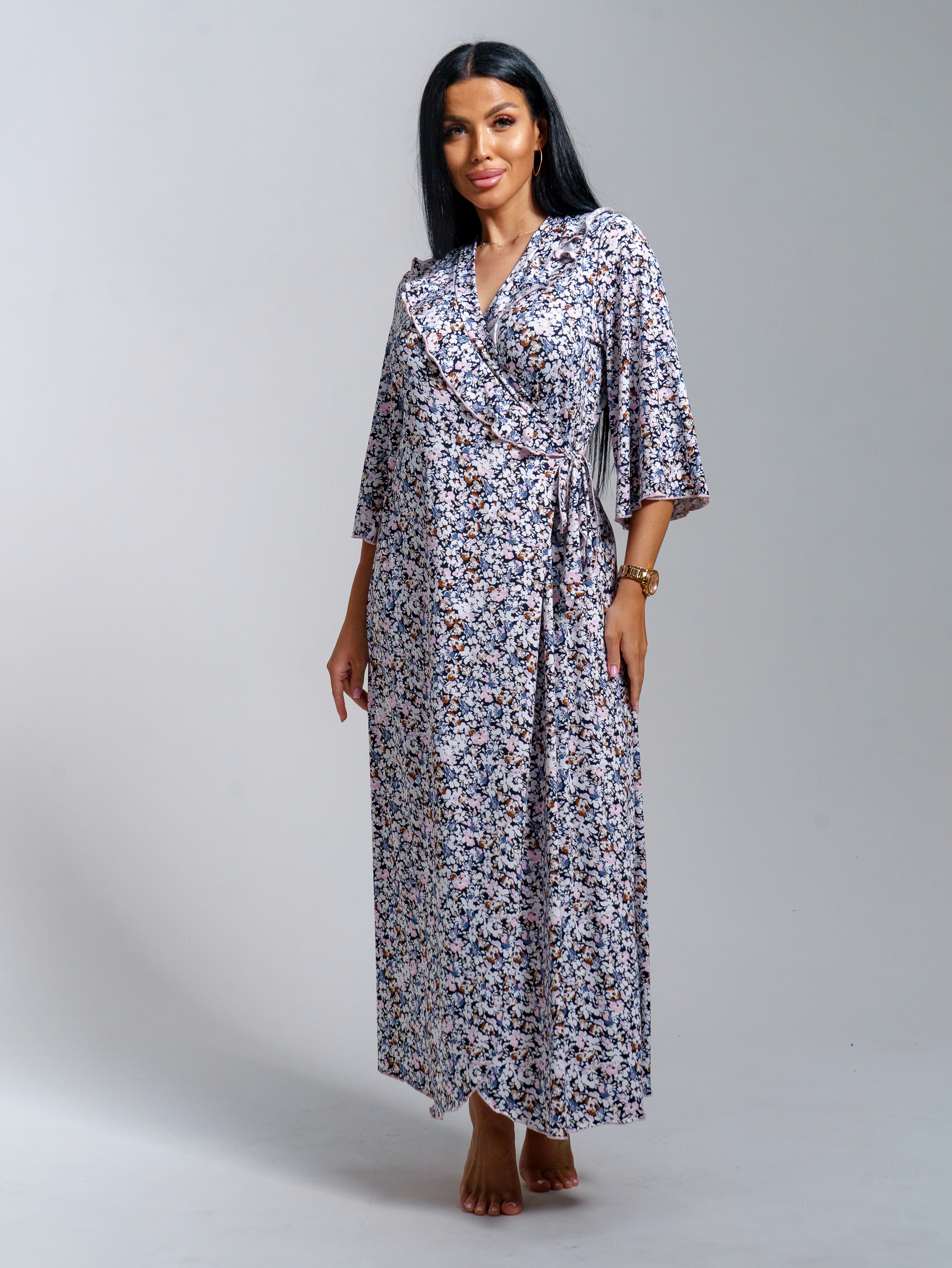 Представляем вашему вниманию наш новый оригинальный женский халат, выполненный из легкой и струящейся ткани масло (100% полиэстер). Этот халат станет идеальным выбором для тех, кто ценит стиль и комфорт в домашней одежде! Основные характеристики: Элегантные расклешенные рукава: Придают халату утонченный и романтичный вид, добавляя нотку шарма в повседневный образ. Оборка на горловине: Вырез горловины украшен изящной оборкой, что делает халат еще более привлекательным и женственным. Качественная обработка срезов: Специальная строчка на срезах обеспечивает долговечность и аккуратный внешний вид, даже после многочисленных стирок. Удобные завязки: Халат оснащен внутренними и внешними завязками, позволяющими регулировать посадку и обеспечивать комфорт при носке. Размеры: Доступен в размерах 46-60, что позволяет каждой женщине найти идеальный вариант для себя. Длина халата — миди, что придает ему универсальность и делает его подходящим для различных ситуаций. Этот халат станет отличным дополнением к вашему ассортименту и привлечет внимание ваших клиентов, ценящих стиль и комфорт. Заказывайте оптом и предложите своим покупателям уникальную модель, которая станет любимым элементом домашнего гардероба!