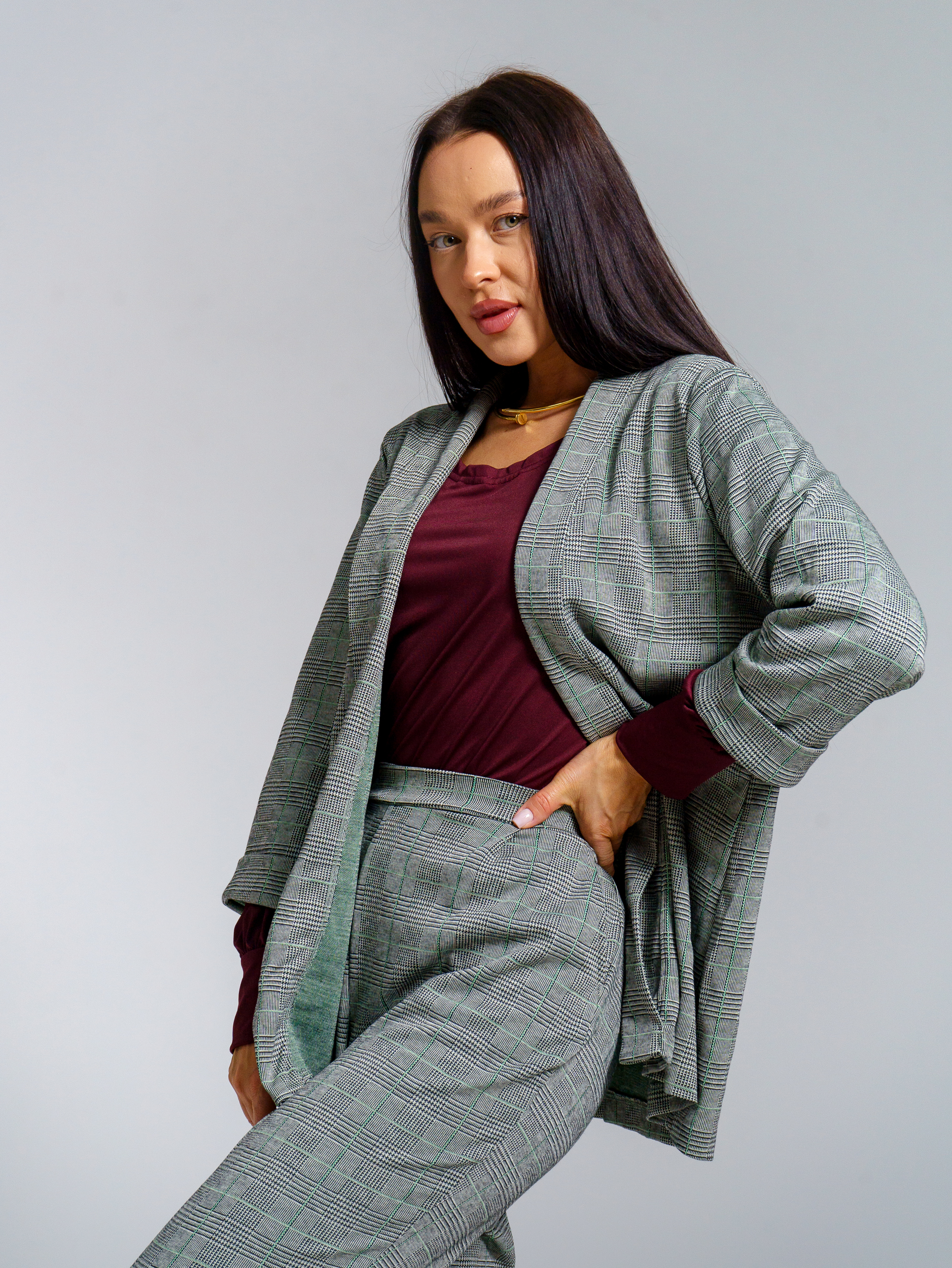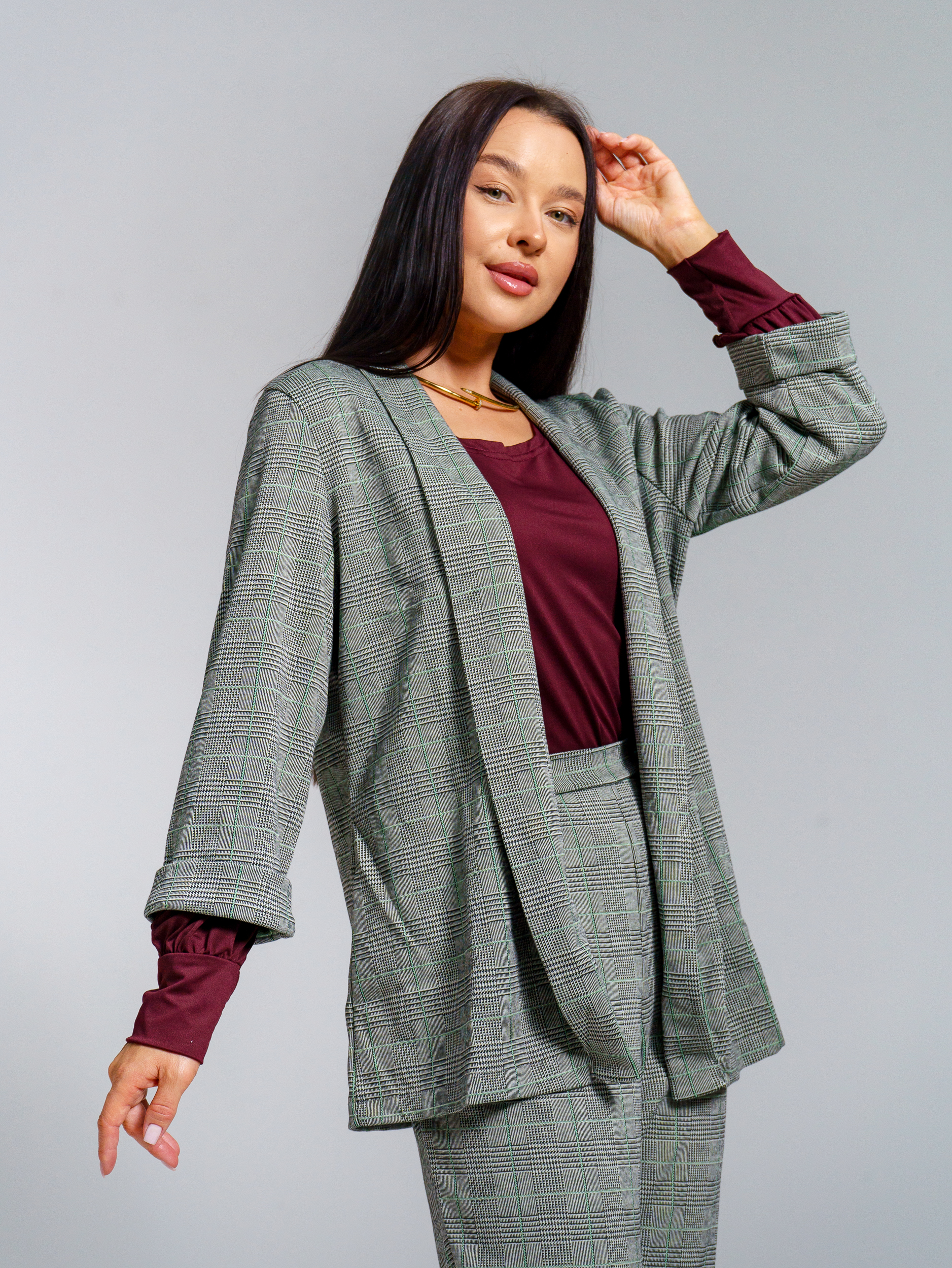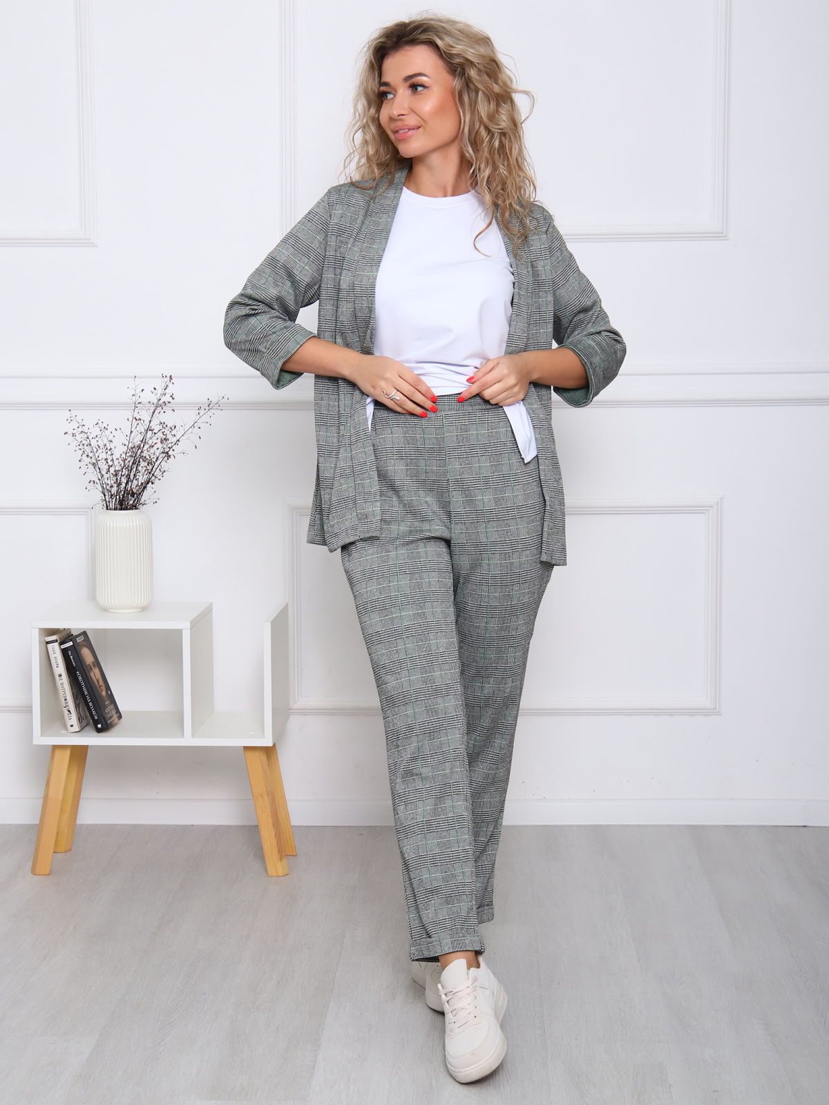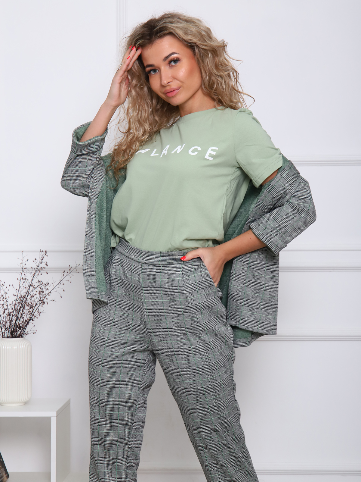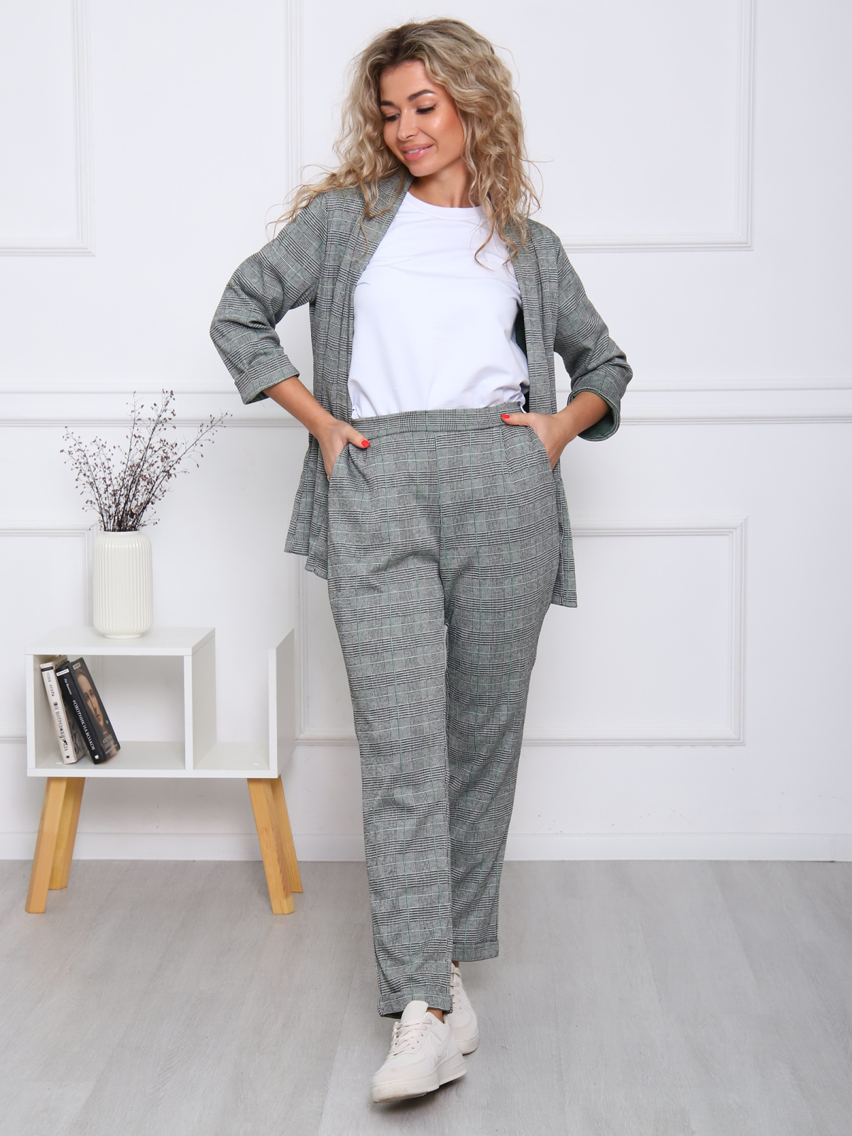 Стиль(зелёный) брюки р.56, жаккард (30%вискоза 65%п/э 5%лайкра)
