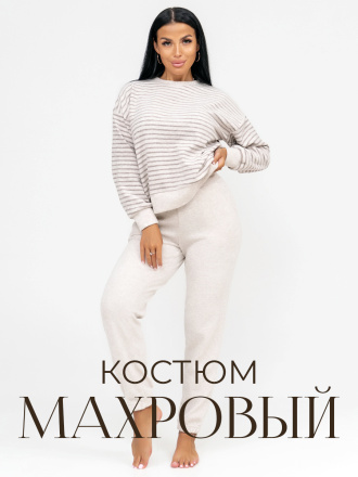 Махровый костюм (брюки + джемпер) — комфорт и стиль для вашего ассортимента Представляем удобный и стильный махровый костюм, который понравится вашим покупателям благодаря высокому качеству и продуманному дизайну. В комплект входят однотонные брюки и полосатый джемпер с однотонными манжетами. Характеристики: Брюки с удобными карманами и эластичным низом на резинке для максимального комфорта Джемпер с модной полоской и комфортными манжетами Состав ткани: 80% хлопок, 20% полиэстер — мягкий, дышащий, износостойкий материал Отличный выбор для повседневной домашней одежды и отдыха Идеален для активных прогулок и занятий спортом Подойдёт для уютных выходных и путешествий Универсальный комплект для всех возрастов и стилей \Добавьте этот махровый костюм в ассортимент вашего магазина — порадуйте клиентов комфортом и современным дизайном!