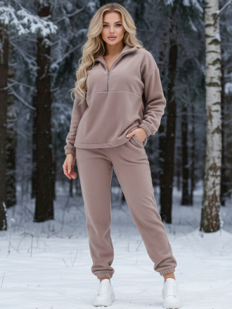 Теплый флисовый женский костюм оверсайз Этот стильный и уютный костюм станет идеальным выбором для прохладных дней. Изготовленный из мягкого и приятного на ощупь флиса, он обеспечивает тепло и комфорт даже в самую холодную погоду. Свободный покрой позволяет свободно двигаться, сохраняя чувство свободы и удобства. Особенности костюма: Толстовка с молнией спереди для удобной регулировки температуры. По низу толстовки предусмотрена удобная резинка с регулируемым ползунком, позволяющая дополнительно зафиксировать форму и сохранить тепло. Рукава и низ брюк оснащены эластичной резинкой, удерживая тепло и обеспечивая дополнительную защиту от ветра. Удобные карманы в боковых швах брюк позволяют хранить необходимые мелочи. Материал отличается высоким качеством и долговечностью, гарантируя долгий срок службы изделия. Этот костюм подойдет как для повседневного использования, так и для активного отдыха, прогулок на свежем воздухе или занятий спортом. Создан специально для тех, кто ценит комфорт, тепло и стиль одновременно.