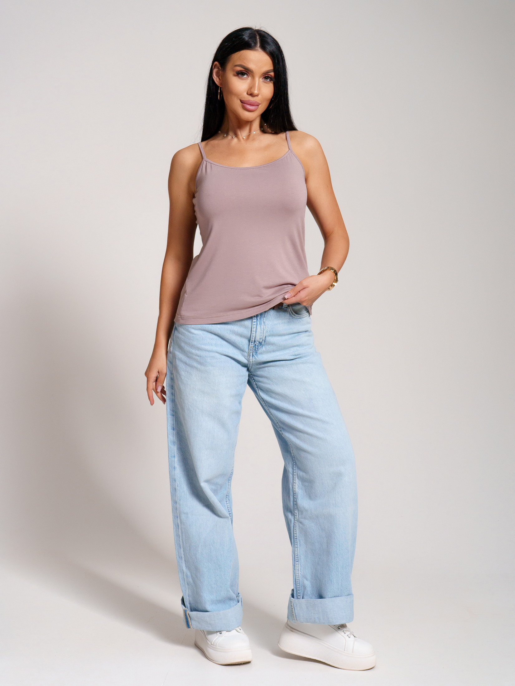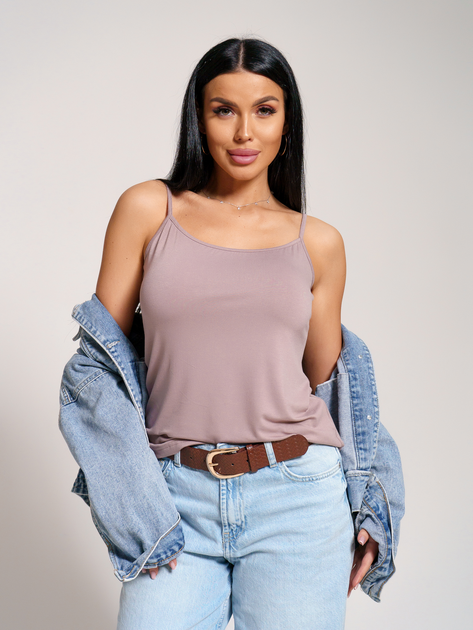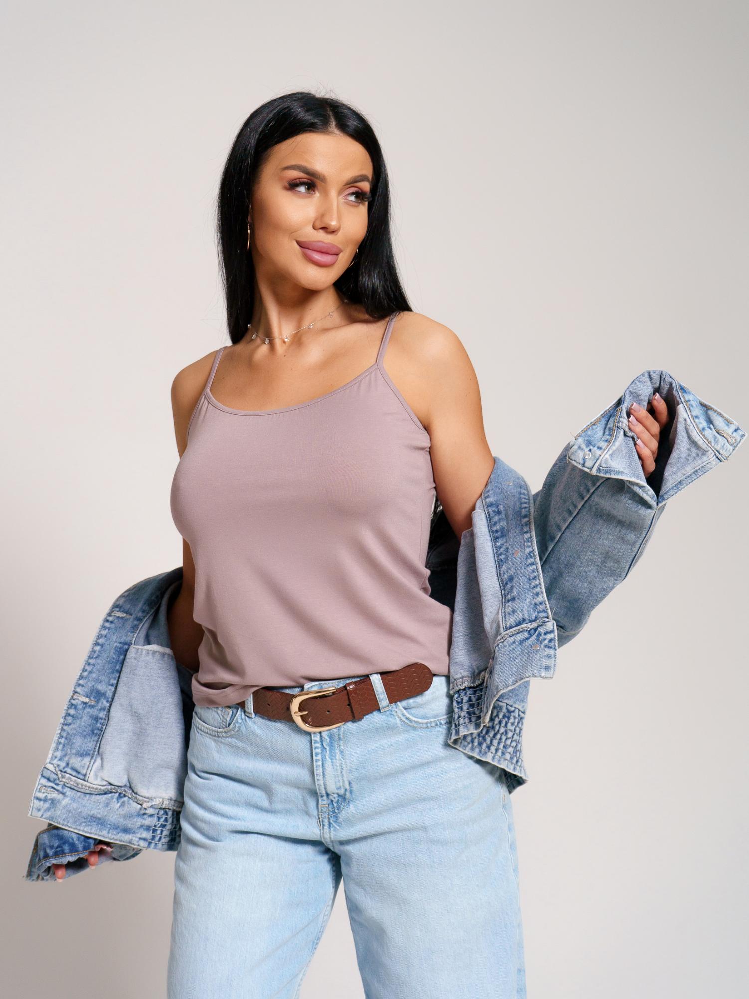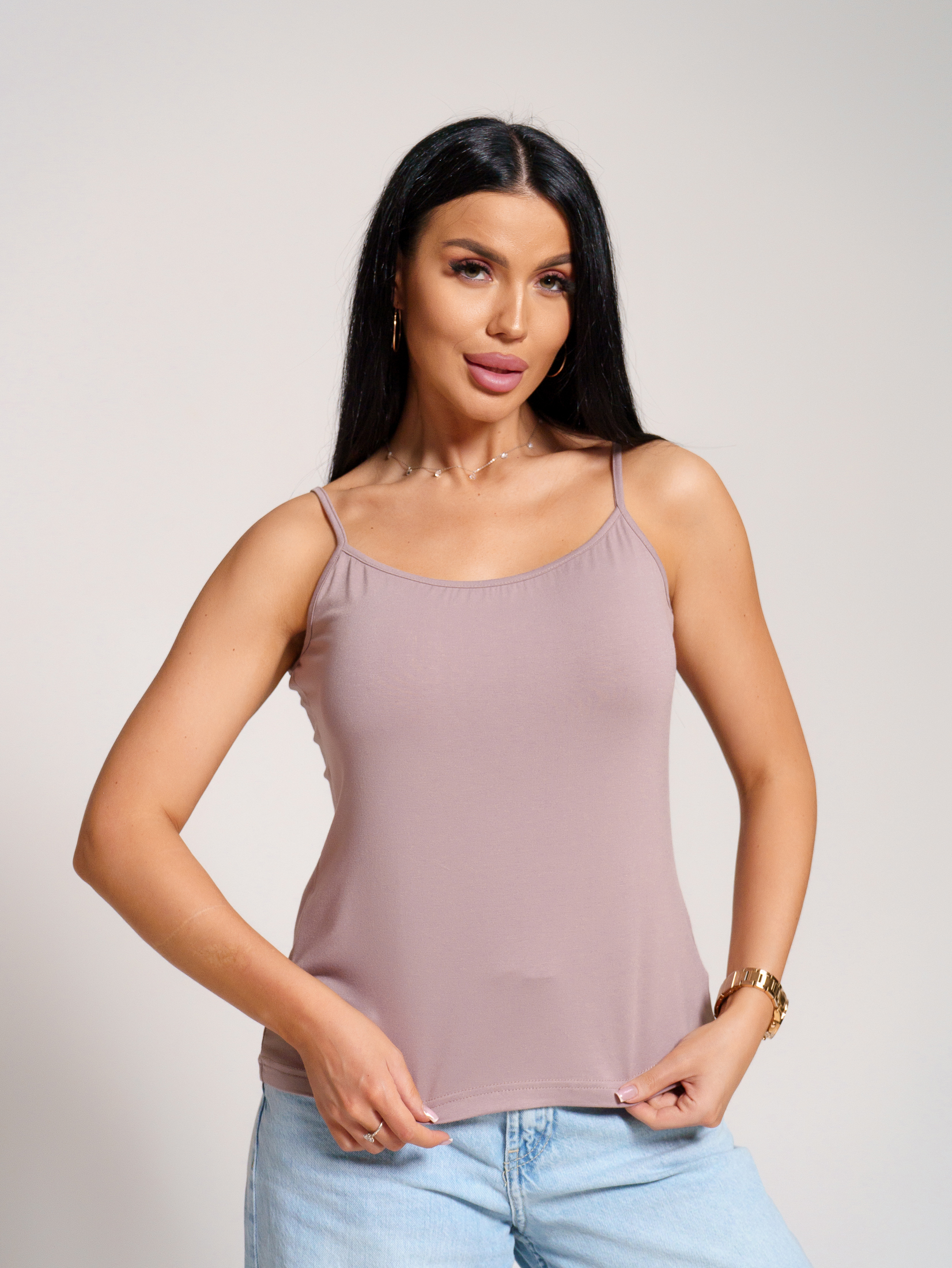 Топ на бретелях из вискозы. Низ подшит на плоскошовной машине