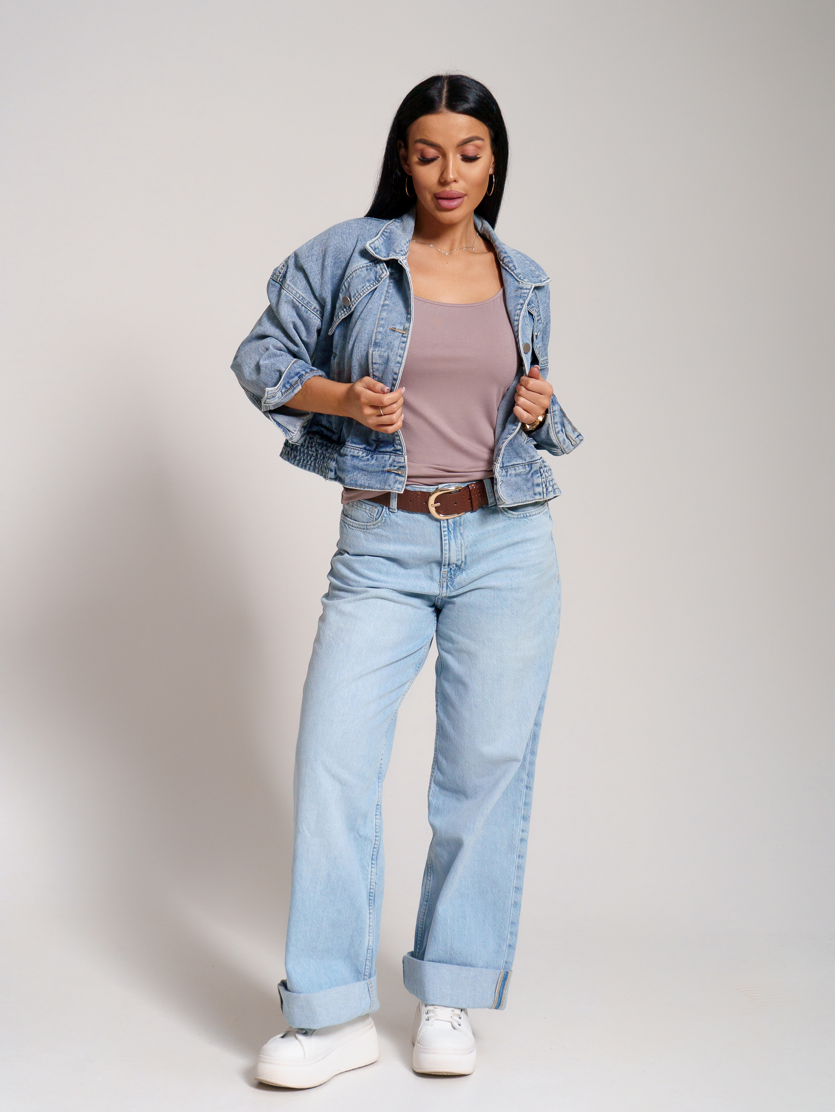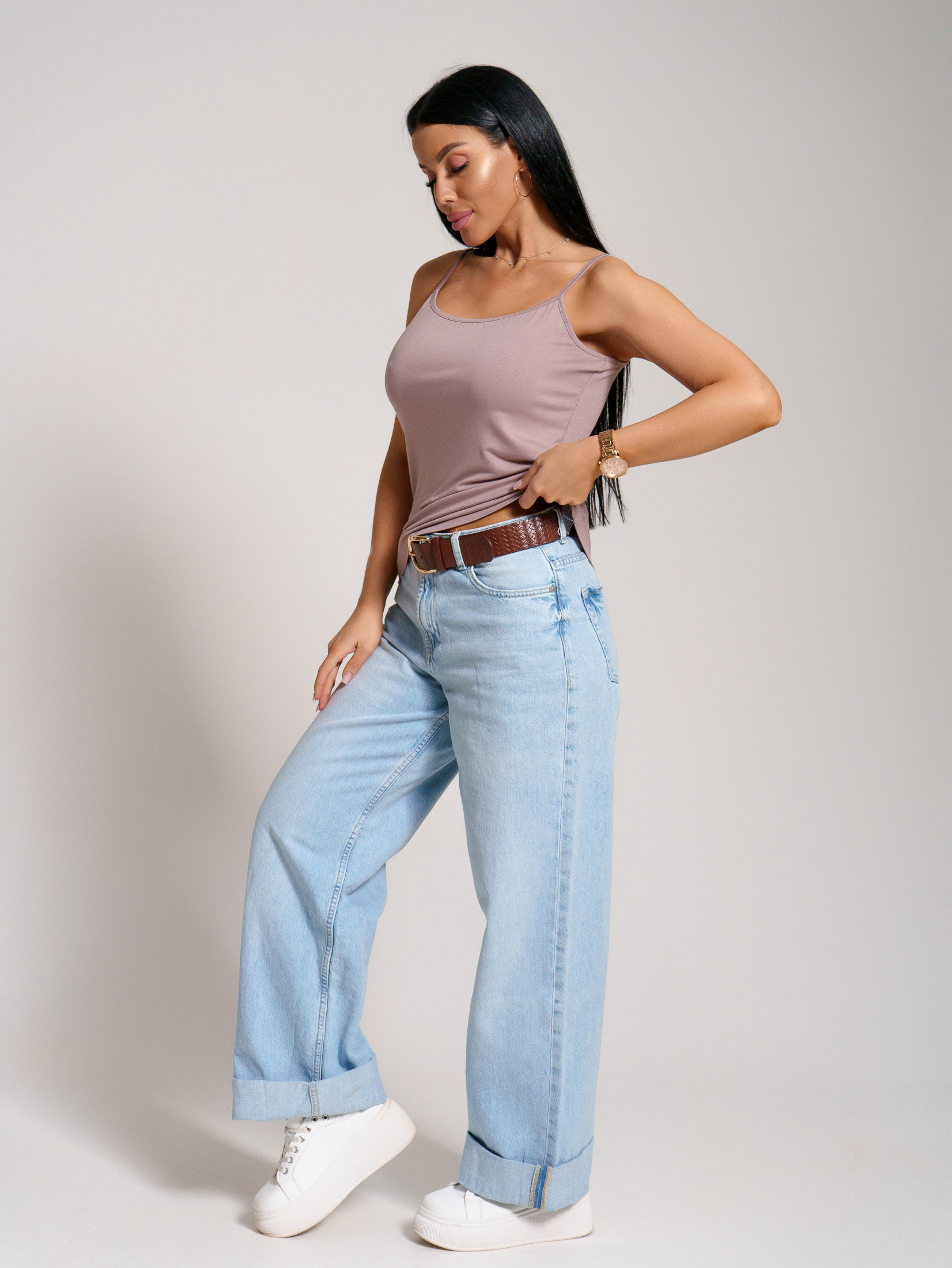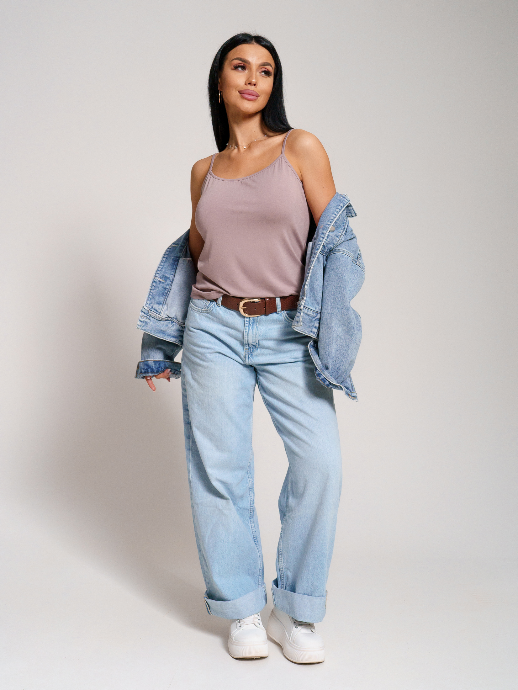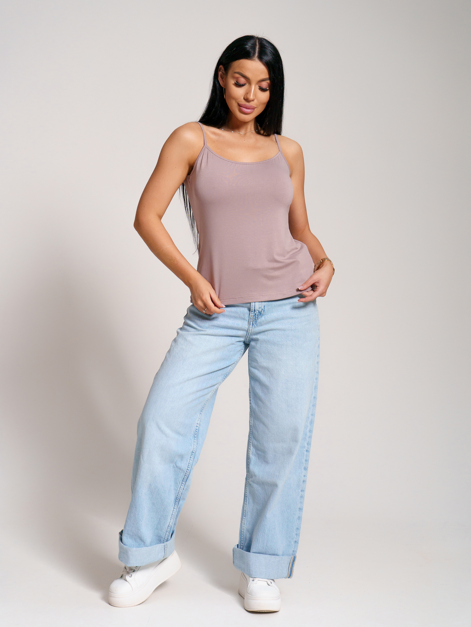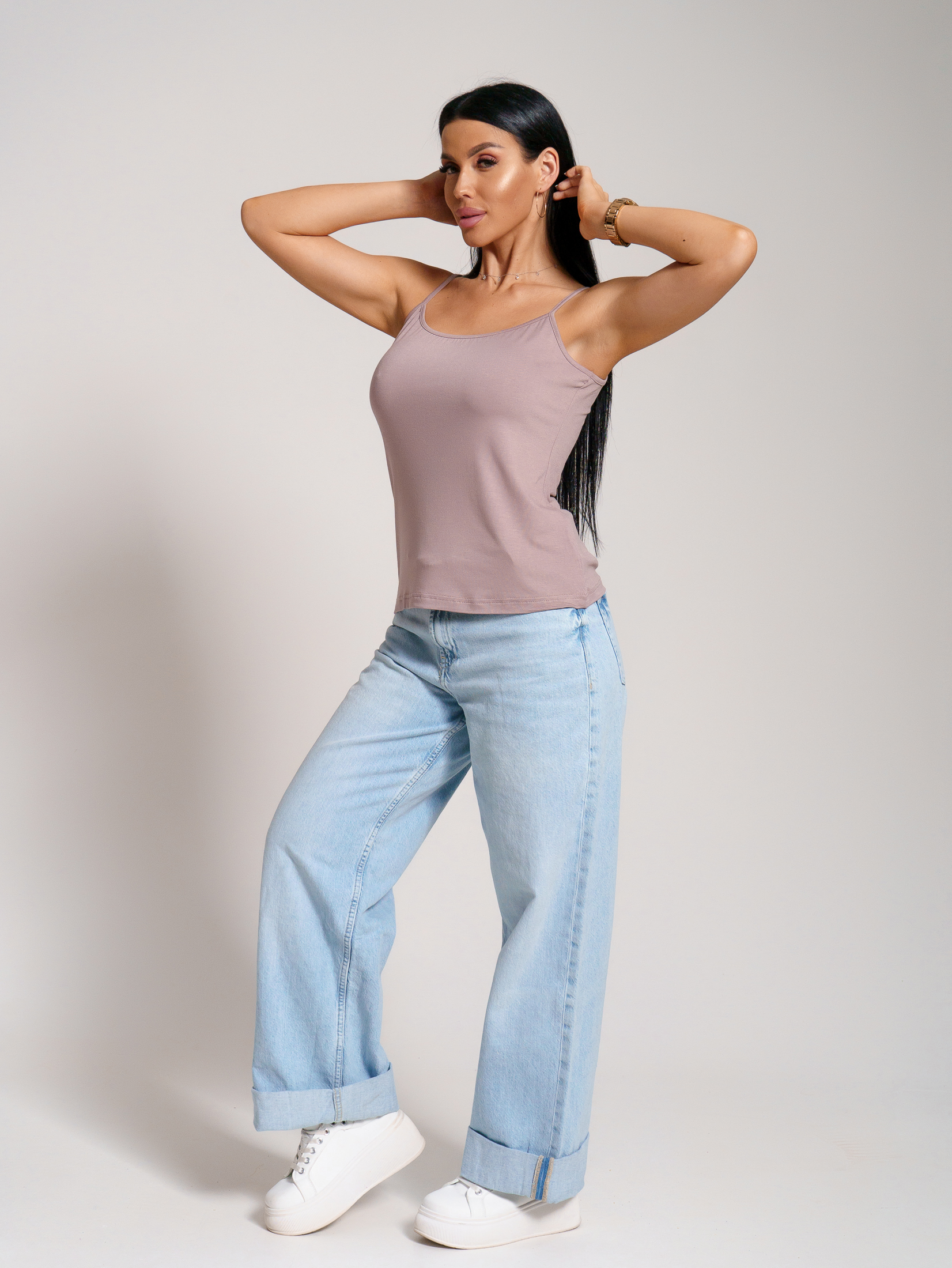 Топ на бретелях из вискозы. Низ подшит на плоскошовной машине
