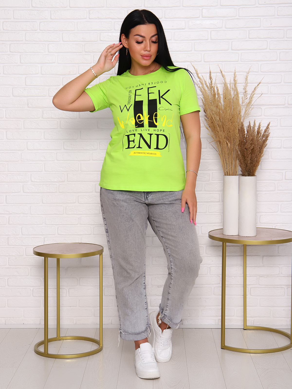 Футболка женская с коротким втачным рукавом, горловина круглой формы, на детали переда печать.