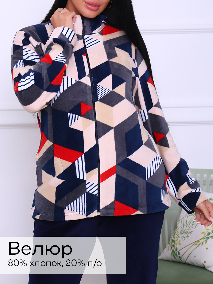 Форсаж(ромбы красные) толстовка р.60, велюр (80% хлопок, 20% п/э)