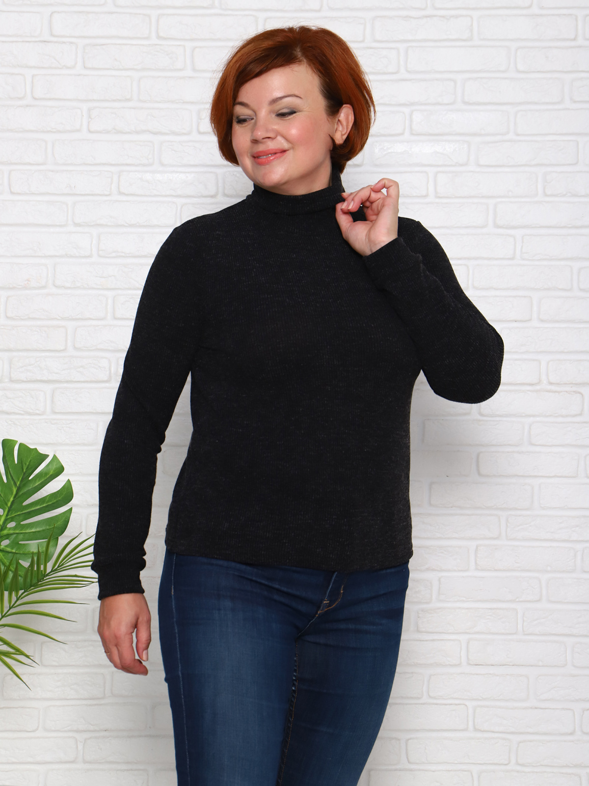 Блузка (водолазка) женская с втачным длинным рукавом на манжете и высоким воротником — стойка.